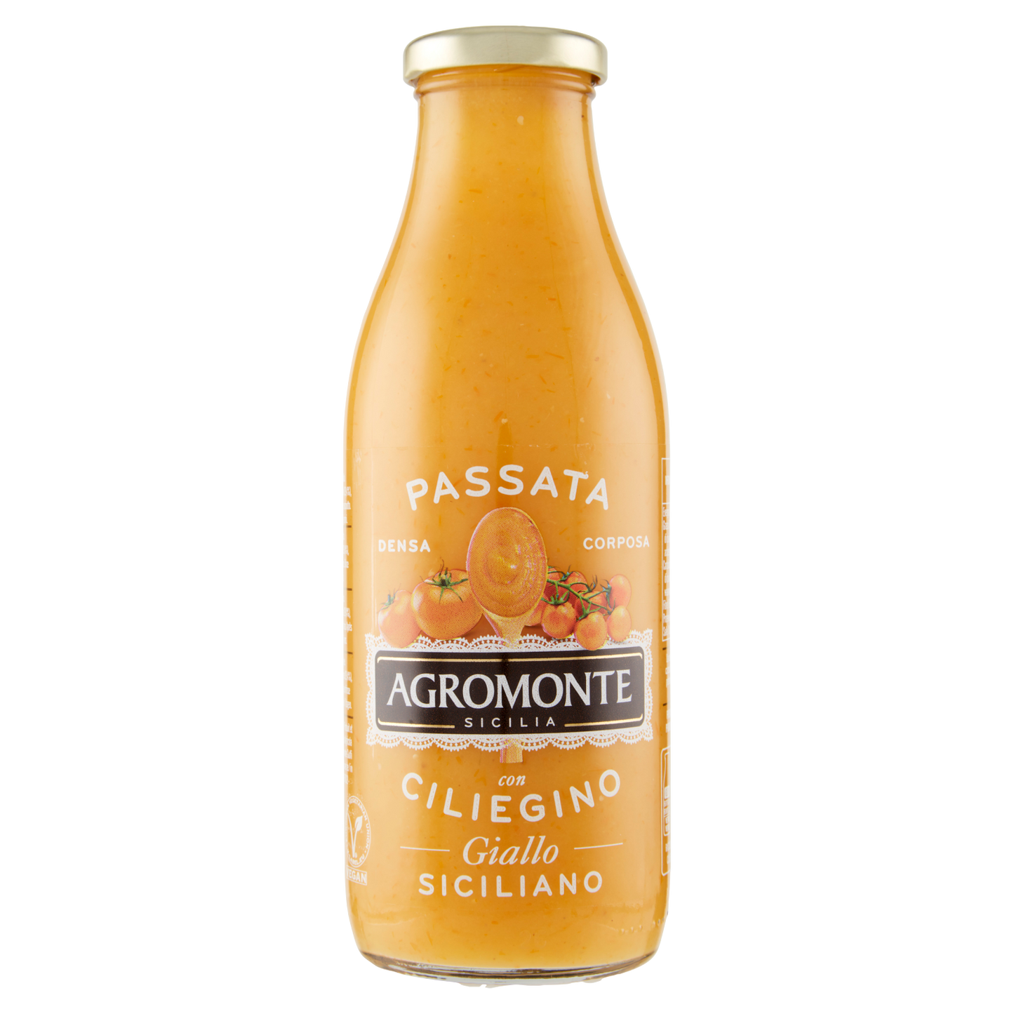 AGROMONTE Passato Ciliegino Giallo is a premium yellow cherry tomato passata, presented in a 520ml bottle and sold in cases of 12. Crafted for culinary professionals, it offers a smooth texture and vibrant flavor, ideal for enhancing sauces, soups, and gourmet dishes with a distinctive, natural sweetness. Its consistent quality ensures reliable results in any kitchen setting.
