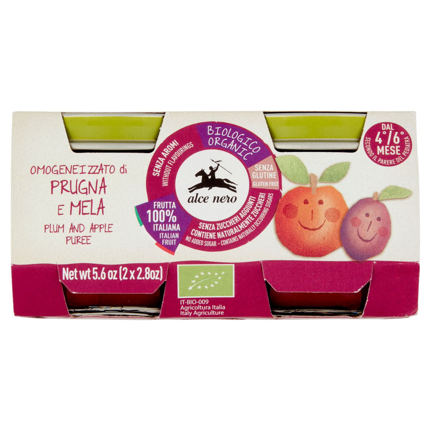 ALCENERO Omogeneizzato Prugna e Mela Organic offers a carefully crafted blend of organic plum and apple, providing a natural and nutritious option for infants. Each 80g pack ensures gentle digestion and essential vitamins from high-quality organic fruits. Ideal for parents seeking a wholesome, additive-free choice to support their baby's healthy growth and development. Available in convenient packs of two, with six boxes per set.