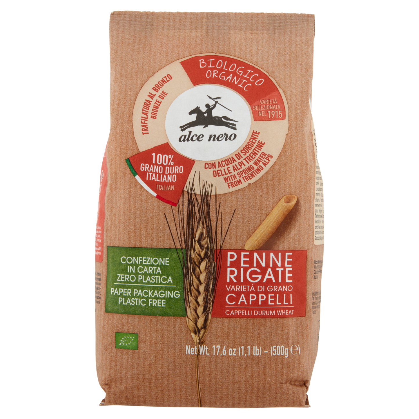 Alcenero Penne Rigate Senatore Cappelli is a premium organic pasta crafted from ancient Senatore Cappelli wheat. This 500g pack, available in a box of 12, offers a rich, nutty flavor and firm texture ideal for authentic Italian dishes. Its organic cultivation ensures a natural, high-quality product free from synthetic additives, perfect for those seeking both taste and health benefits in their pasta.
