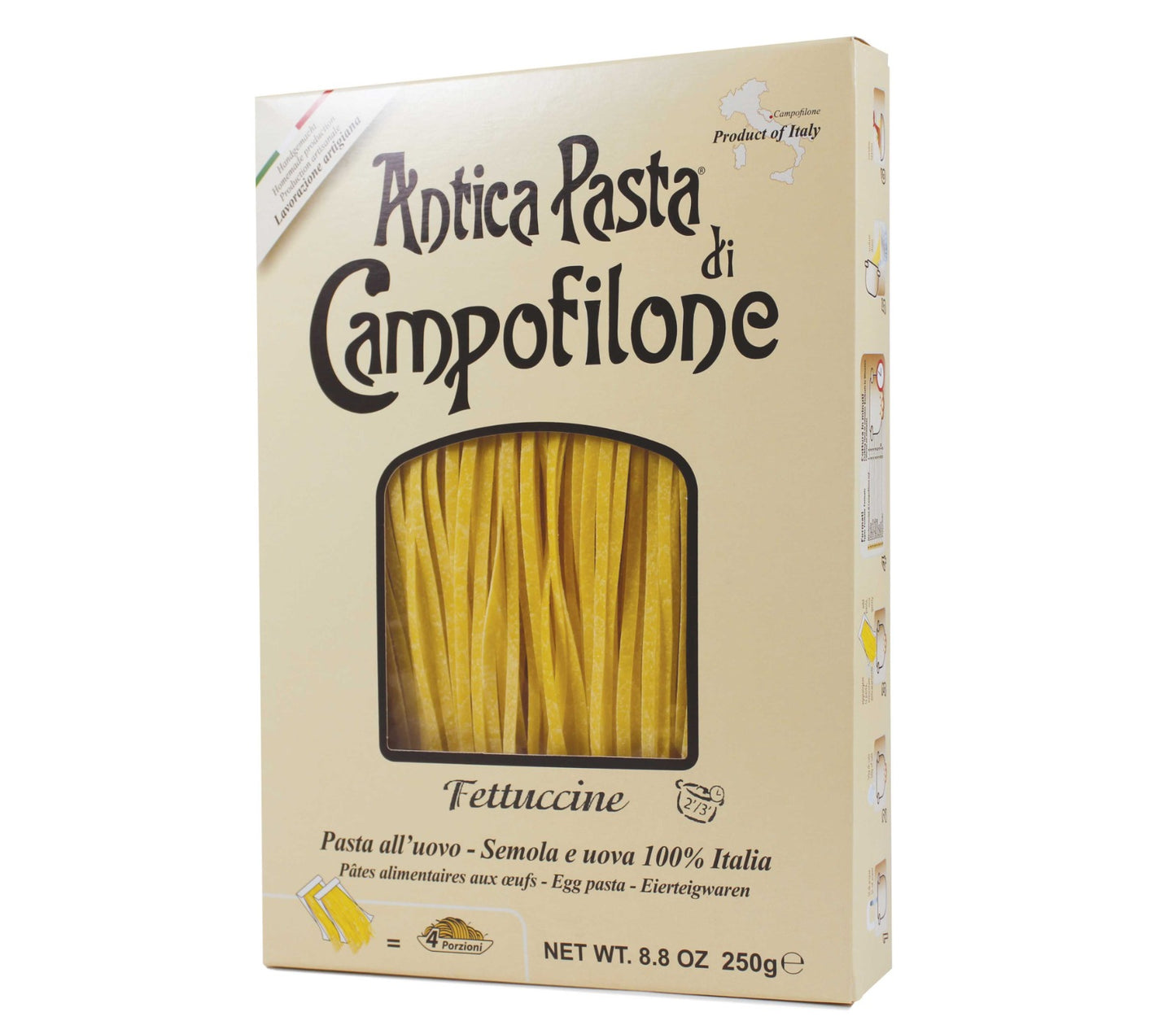 ANTICA PASTA CAMPOFILONE FETTUCCINE ALL'UOVO 250g offers a traditional Italian pasta experience crafted with high-quality eggs for a rich flavor and firm texture. Perfect for expert chefs and home cooks alike, these fettuccine strands hold sauces beautifully, enhancing every dish with authentic taste and texture. Sold in a convenient 10-pack box, they ensure you have ample supply for multiple meals or gatherings.