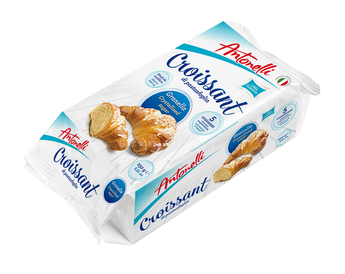 Enjoy the authentic Italian taste with Antonelli Croissant Granella di Zucchero. Each pack contains five croissants, totaling 185g, featuring a delicate, buttery texture topped with crunchy sugar granules for added sweetness and bite. Perfectly portioned in boxes of eight, they provide a consistent, high-quality pastry experience ideal for cafes or gourmet breakfast offerings. Crafted with expert baking techniques, these croissants deliver a satisfying balance of crispness and softness, making them a refined choice for discerning palates.