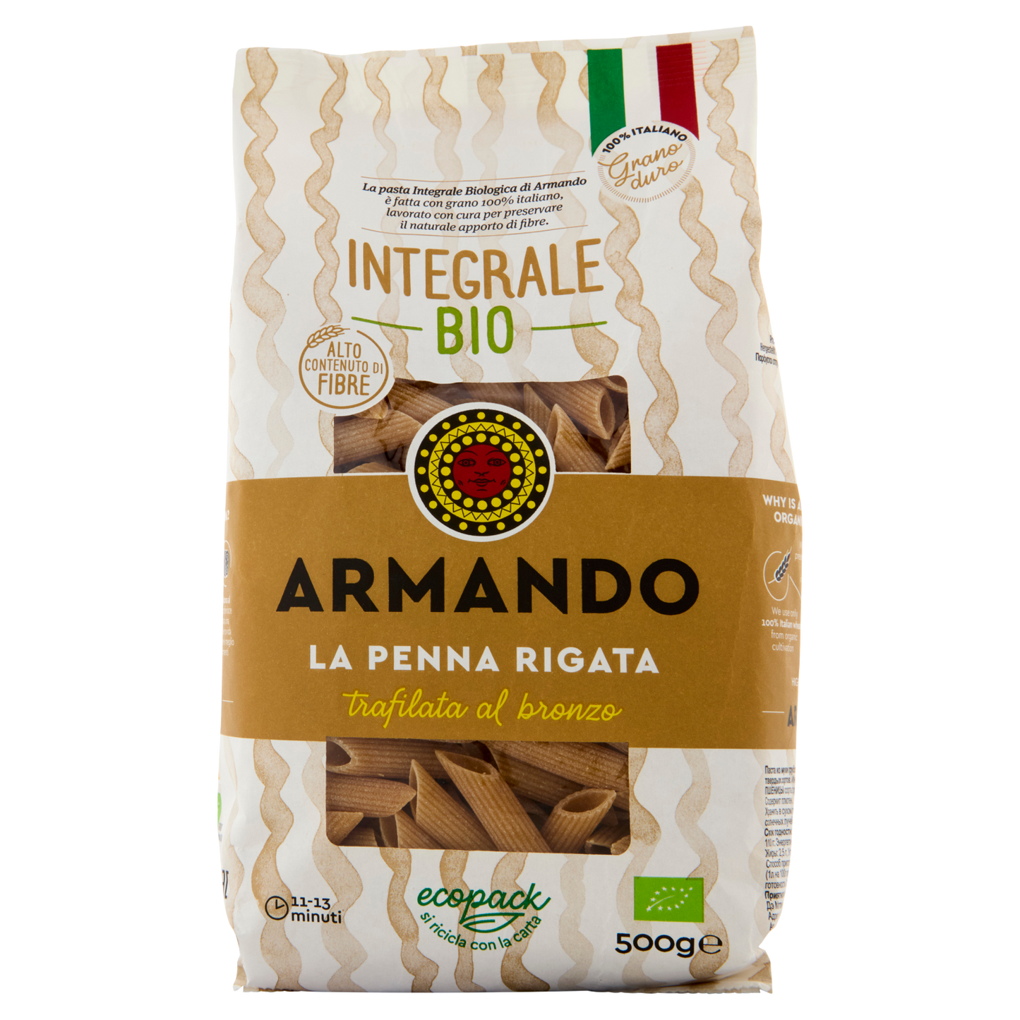 ARMANDO PENNETTA INTEGRALE BIO PASTA offers a wholesome choice with its 500g pack, available in a box of 12. Made from organic whole wheat, this pasta delivers rich fiber and nutrients essential for a balanced diet. Its integral composition ensures a robust texture and authentic flavor, ideal for health-conscious