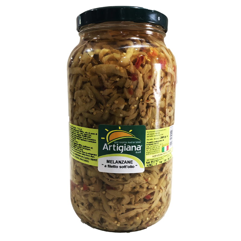 Artigiana Sud Melanzane a Filetti offers premium-quality sliced eggplants, carefully prepared to preserve their natural flavor and texture. Packaged in a convenient 3.1 kg size with two units per box, this product is ideal for professional kitchens seeking consistent quality and ease of use. Perfect for enhancing Mediterranean dishes, it delivers authentic taste and versatility for a variety of culinary applications.