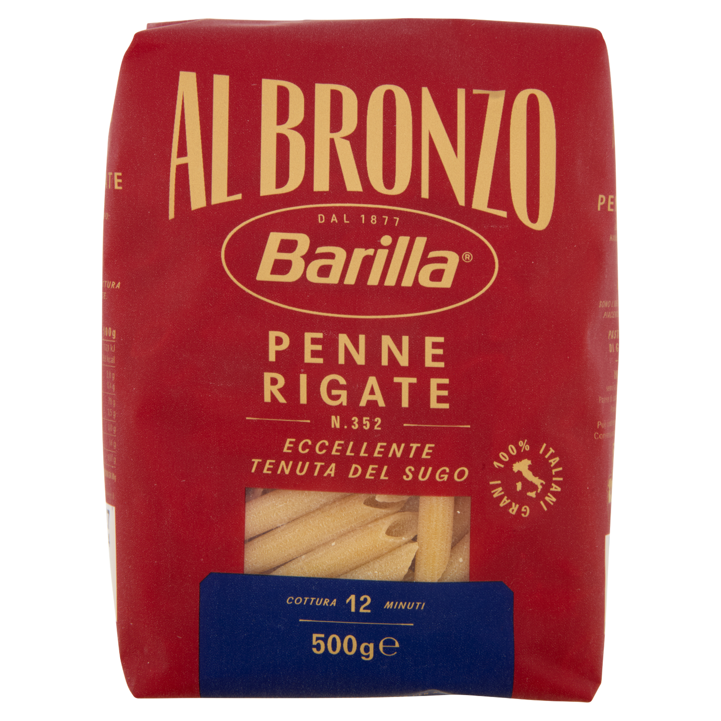 Barilla Bronzo Penne Rigate 500g offers a premium pasta experience crafted using traditional bronze dies, which create a rough texture that holds sauces exceptionally well. This 500g pack, available in a box of 18, ensures consistent quality and ideal portioning for both professional kitchens and discerning home cooks. Its firm bite and superior sauce adhesion make it perfect for a variety of Italian dishes, delivering authentic taste and texture every time.