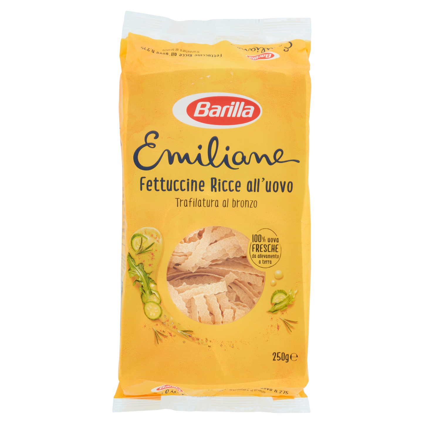 Barilla Fettuccine Ricce all'Uovo offers a premium pasta experience with its rich egg-based dough and distinctive ridged texture. Each 250g pack delivers authentic Italian quality, ideal for capturing sauces and enhancing flavor absorption. Sold in a box of 20, it suits both professional kitchens and gourmet enthusiasts seeking consistent, high-quality pasta for refined dishes.