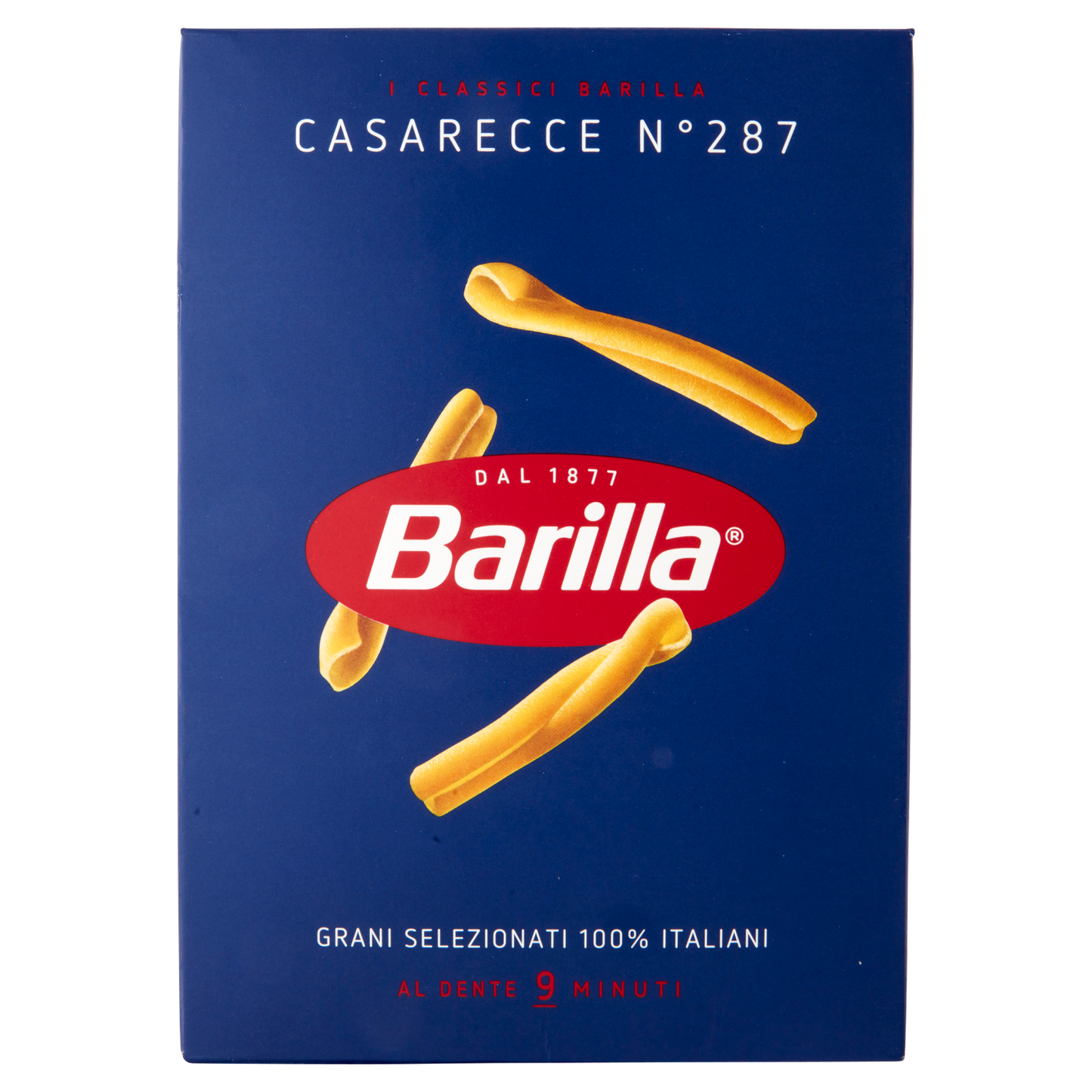 Barilla Casarecce Semola Pasta N.287 offers a traditional Italian shape crafted from high-quality durum wheat semolina. Its twisted form is ideal for holding rich sauces, enhancing every bite with authentic texture and flavor. Perfect for expert chefs seeking reliable consistency and classic taste in every 500g pack, with 28 packs per box for professional kitchens.