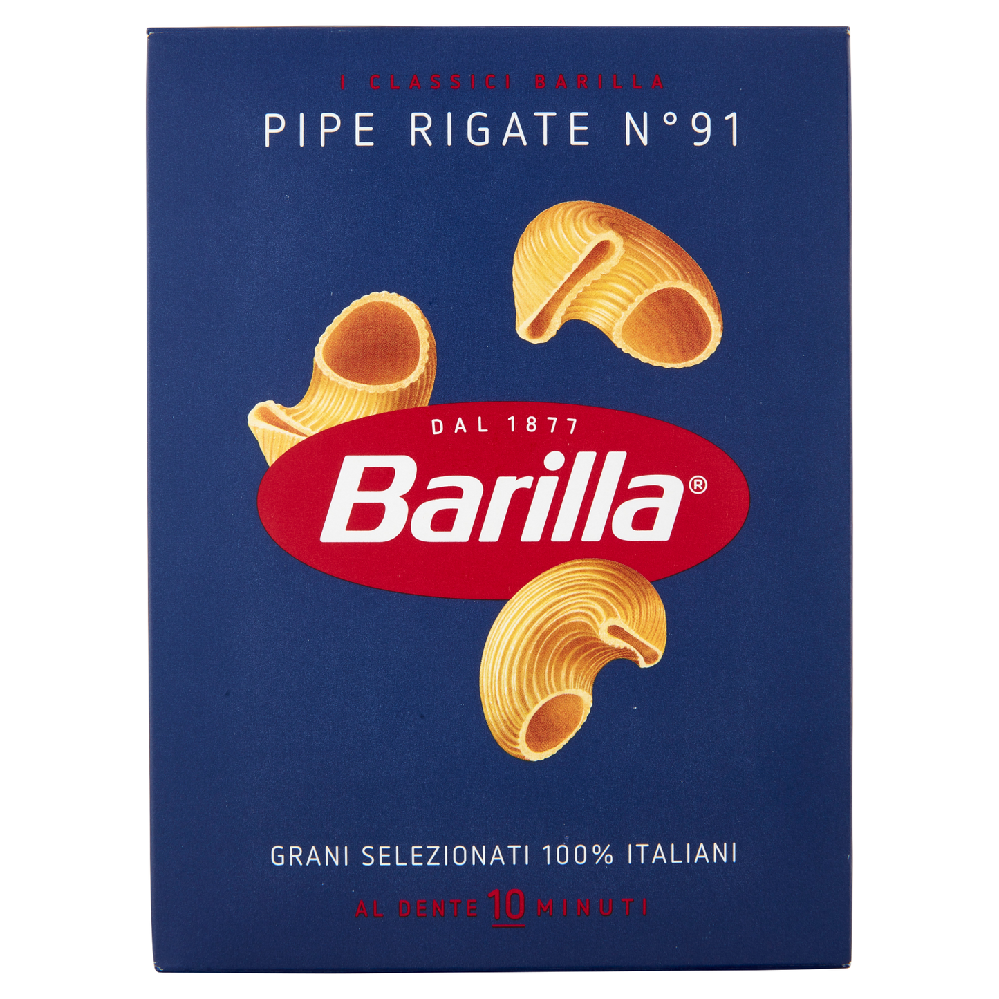 Barilla Pasta di Semola Pipe Rigate N.91 offers a premium-quality durum wheat semolina pasta, shaped into ridged, curved tubes that hold sauces exceptionally well. Each 500g pack ensures consistent texture and al dente cooking, ideal for traditional Italian recipes. Sold in a box of 24, it suits both professional kitchens and bulk buyers seeking authentic pasta with reliable performance.