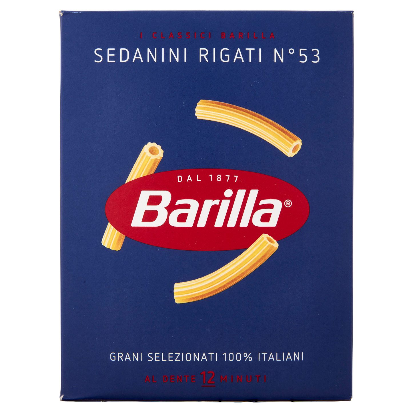 Barilla Pasta di Semola Sedanini Rigati N.53 offers a premium quality durum wheat semolina pasta, crafted to deliver an authentic Italian taste and texture. Its ridged, short tubular shape ensures excellent sauce adherence, enhancing every dish with rich flavor. Ideal for expert chefs seeking consistent cooking performance and versatility in traditional and contemporary recipes. Each 500g pack provides a reliable portion size, with 28 packs available per box for efficient kitchen supply management.