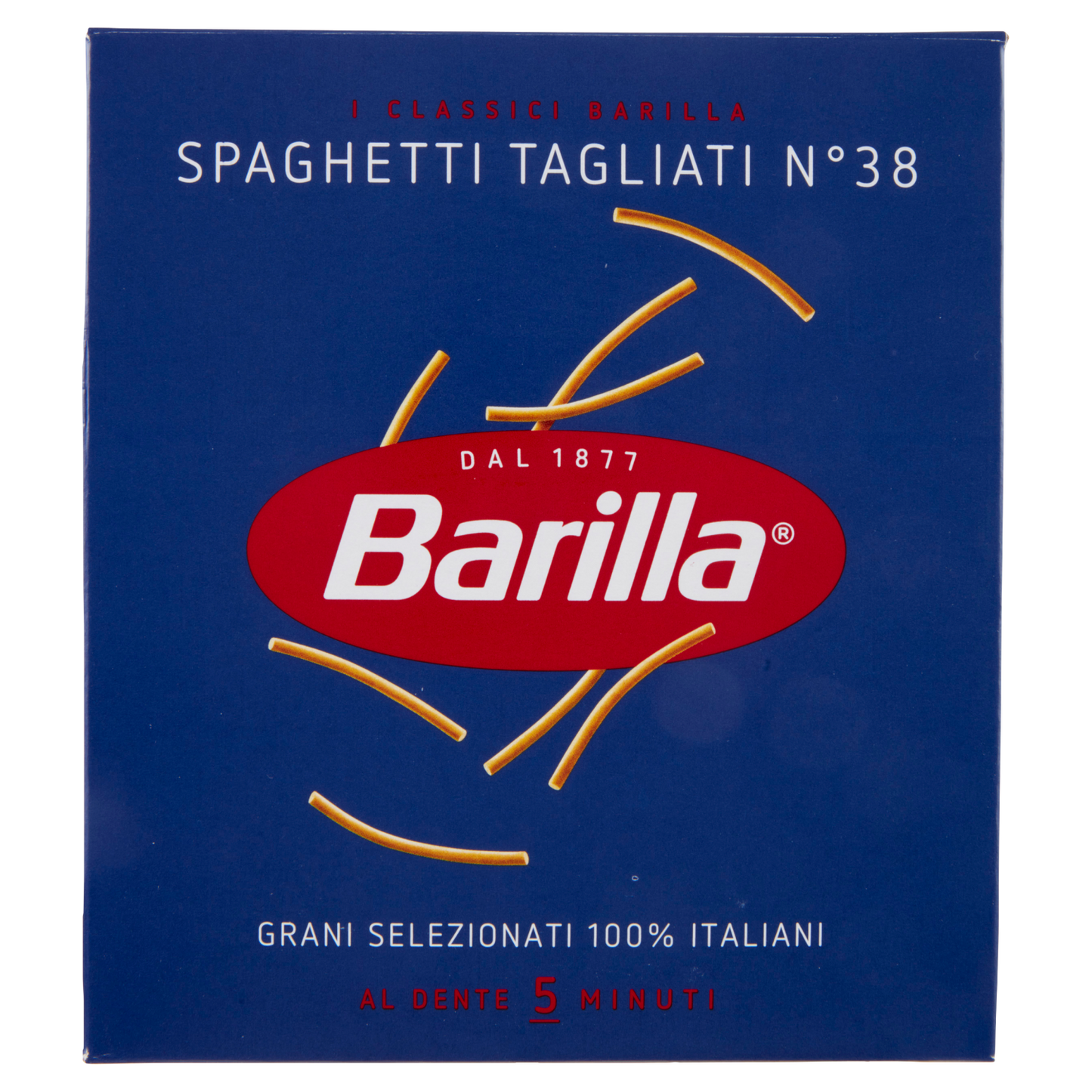 Barilla Pasta di Semola Spaghetti Tagliati N.38 offers authentic Italian quality in convenient 500g packs, with 32 boxes per case. Made from premium durum wheat semolina, these cut spaghetti strands deliver a firm texture and excellent cooking performance, ideal for traditional pasta dishes. Perfect for chefs seeking consistent results and genuine Italian flavor in every serving.