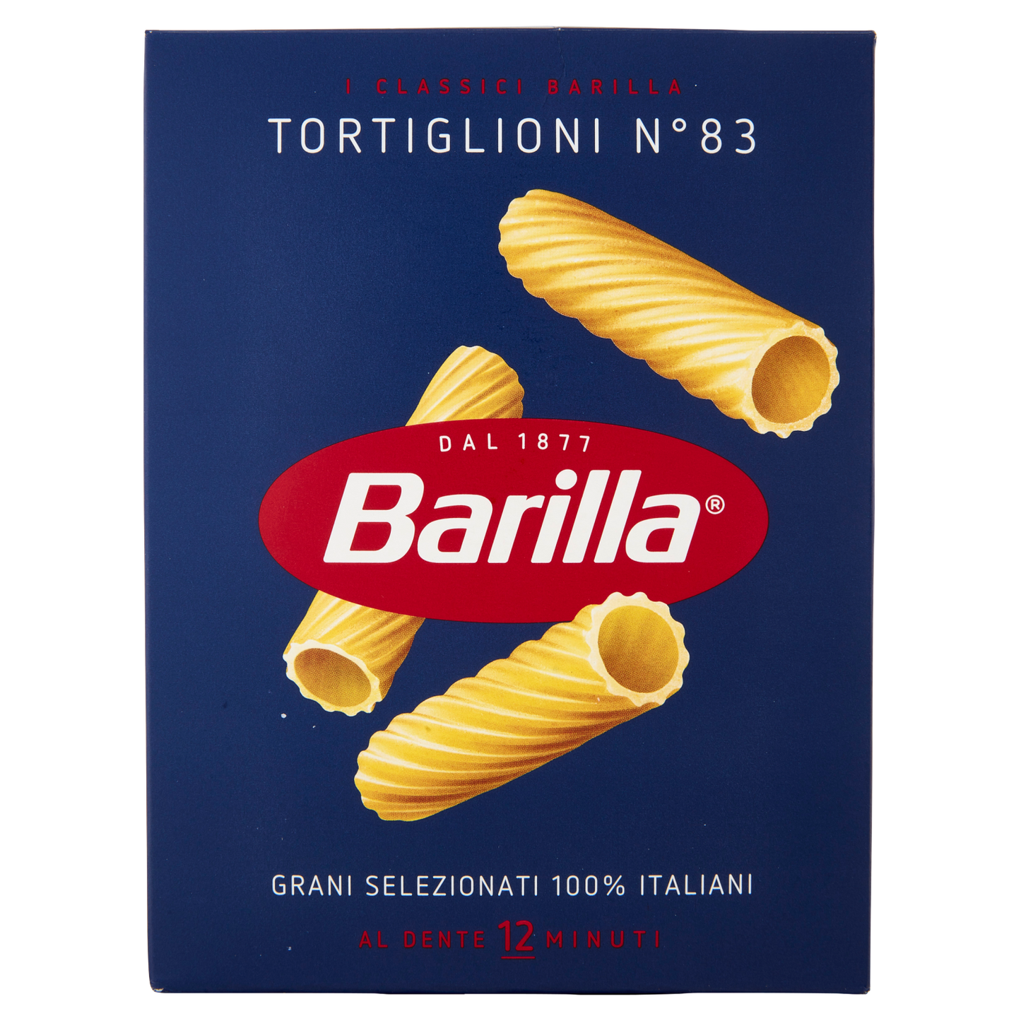 Barilla Tortiglioni N.83 is a premium semolina pasta crafted for superior texture and taste. Its distinctive ridged, tubular shape holds sauces exceptionally well, enhancing every dish. Made from high-quality durum wheat semolina, this 500g pack ensures consistent cooking results, ideal for both traditional and contemporary recipes. Perfect for chefs seeking reliable pasta that delivers authentic Italian flavor and excellent al dente firmness. Available in a convenient box of 24 packs, it suits professional kitchens and bulk needs.