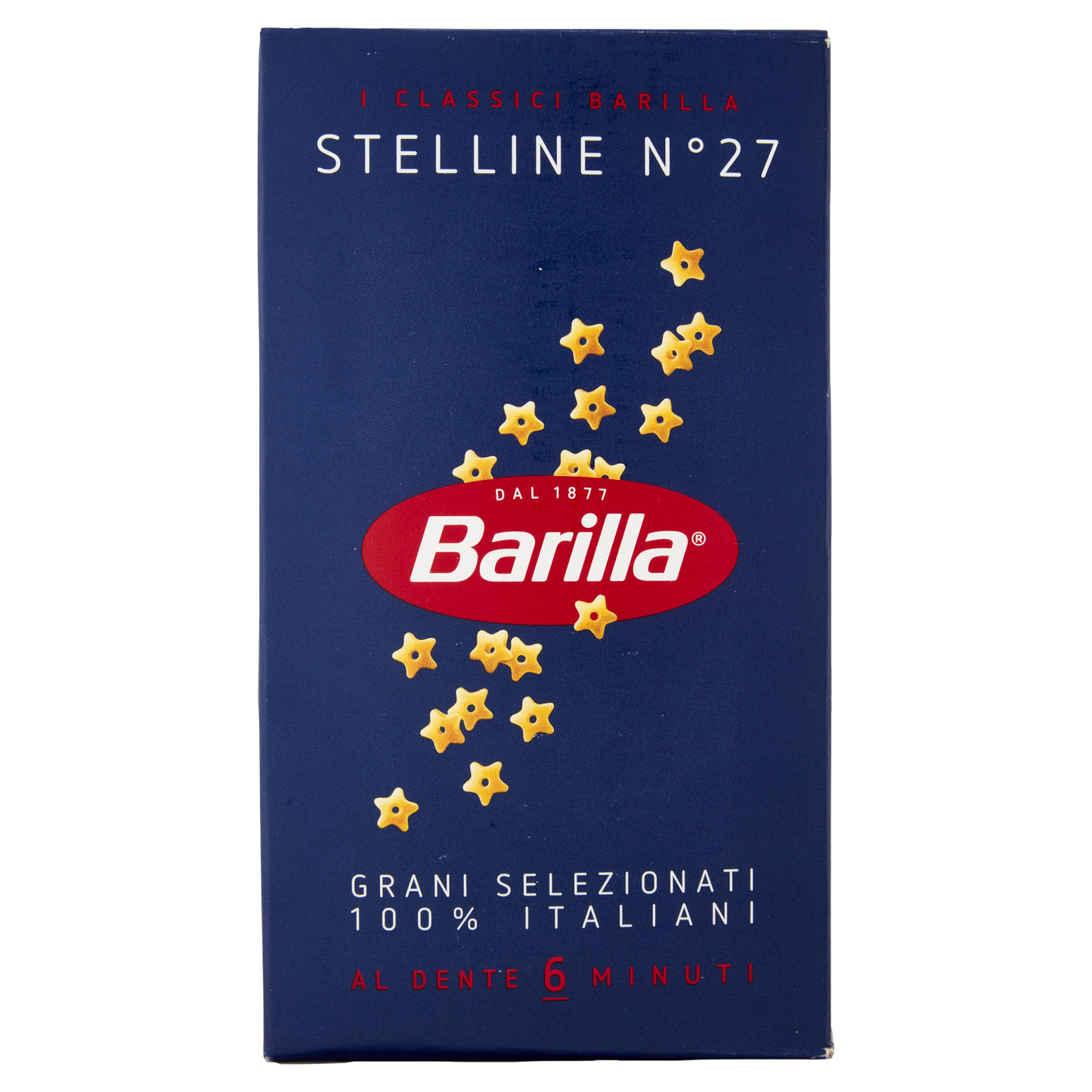 Barilla Pastina Stelline 500g offers a premium quality pasta ideal for delicate soups and light dishes. Its small star-shaped form cooks quickly, providing a smooth texture that enhances the dining experience. Perfect for both home cooking and professional kitchens, this pasta maintains consistent quality and shape, ensuring reliable results every time. Available in a convenient 16-pack box, it supports efficient inventory management for foodservice operations.
