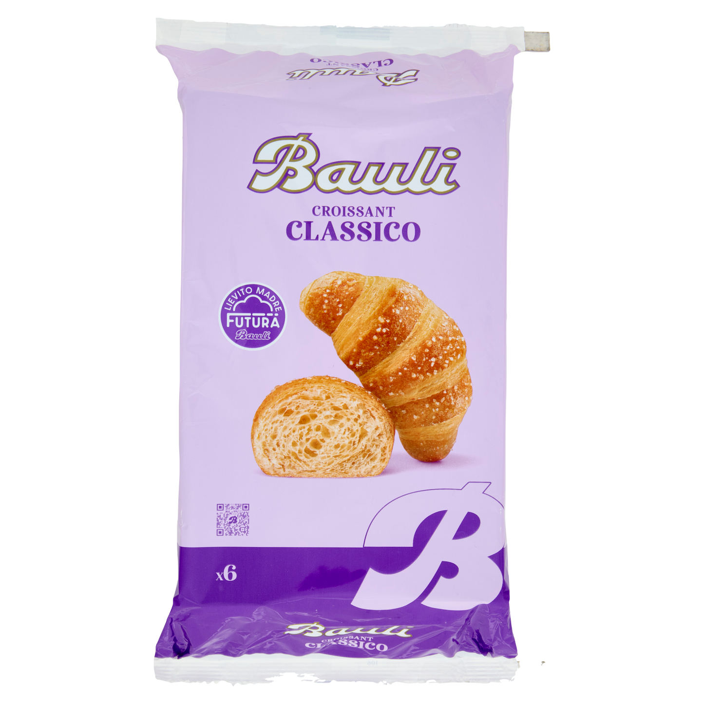 Enjoy the authentic taste of Italy with the Bauli Croissant Classico. Each pack contains six perfectly baked croissants, totaling 240g, crafted to deliver a light, flaky texture and rich buttery flavor. Ideal for breakfast or a sophisticated snack, these croissants bring traditional Italian baking quality to your table. Conveniently packaged in boxes of 12, they are perfect for both retail and catering needs.