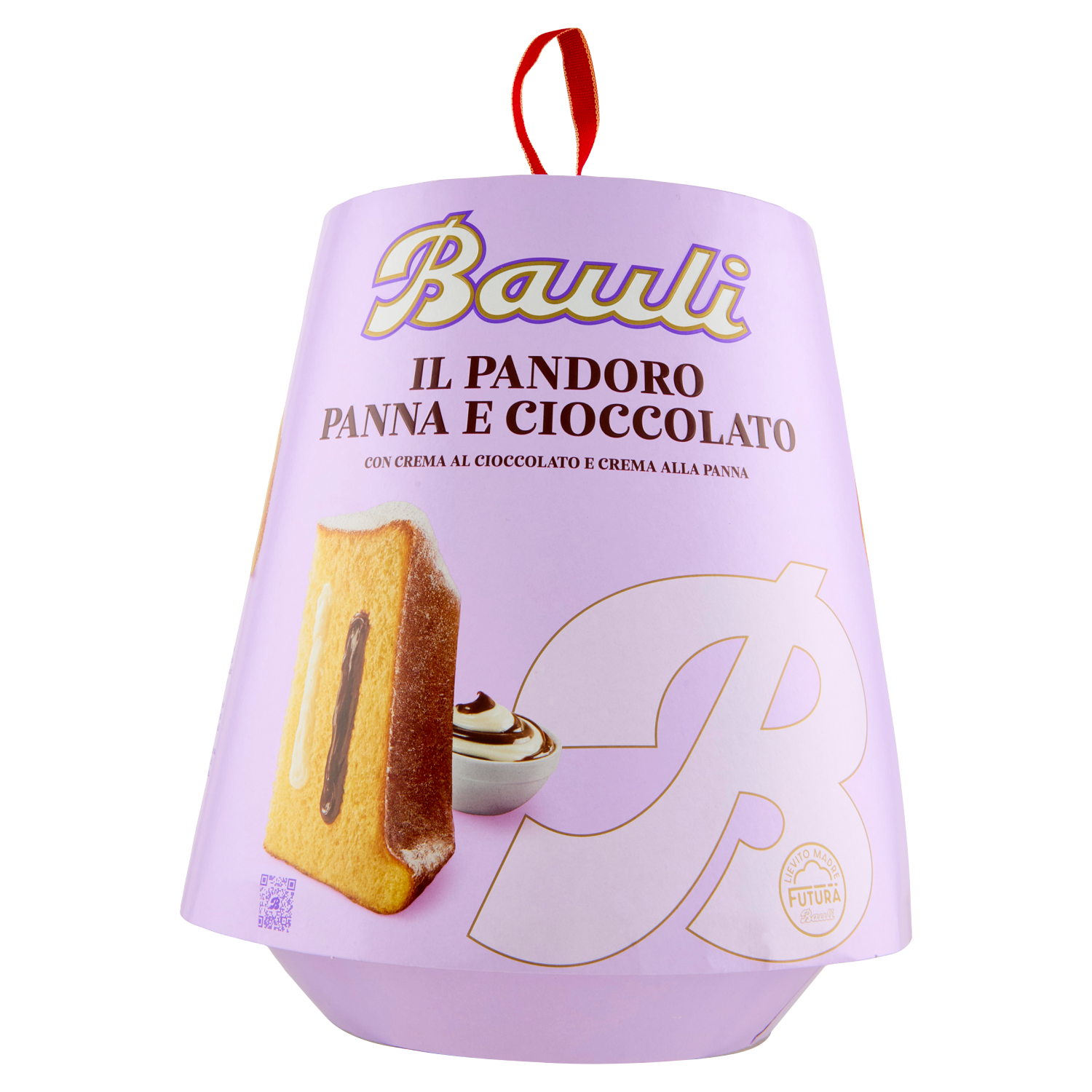 BAULI PANDORO PANNA E CIOCCOLATO 750g combines the traditional Italian pandoro cake with rich cream and chocolate filling for a luxurious dessert experience. Crafted with high-quality ingredients, this 750g cake offers a soft, fluffy texture complemented by smooth chocolate and creamy notes. Ideal for festive occasions or gourmet gift boxes, the product comes in a carton of 16, ensuring consistent supply for retail or catering needs. Its balanced flavors and delicate crumb highlight authentic Italian baking craftsmanship.