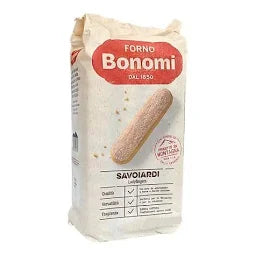 BONOMI SAVOIARDI 400g offers 15 expertly crafted ladyfinger biscuits, ideal for authentic Italian desserts like tiramisu. Each biscuit delivers a light, crisp texture with a subtly sweet flavor, perfect for soaking up coffee or liqueur without losing structure. This 400g pack ensures consistent quality and freshness, making it a reliable choice for both professional chefs and home bakers seeking traditional Savoiardi in their recipes.