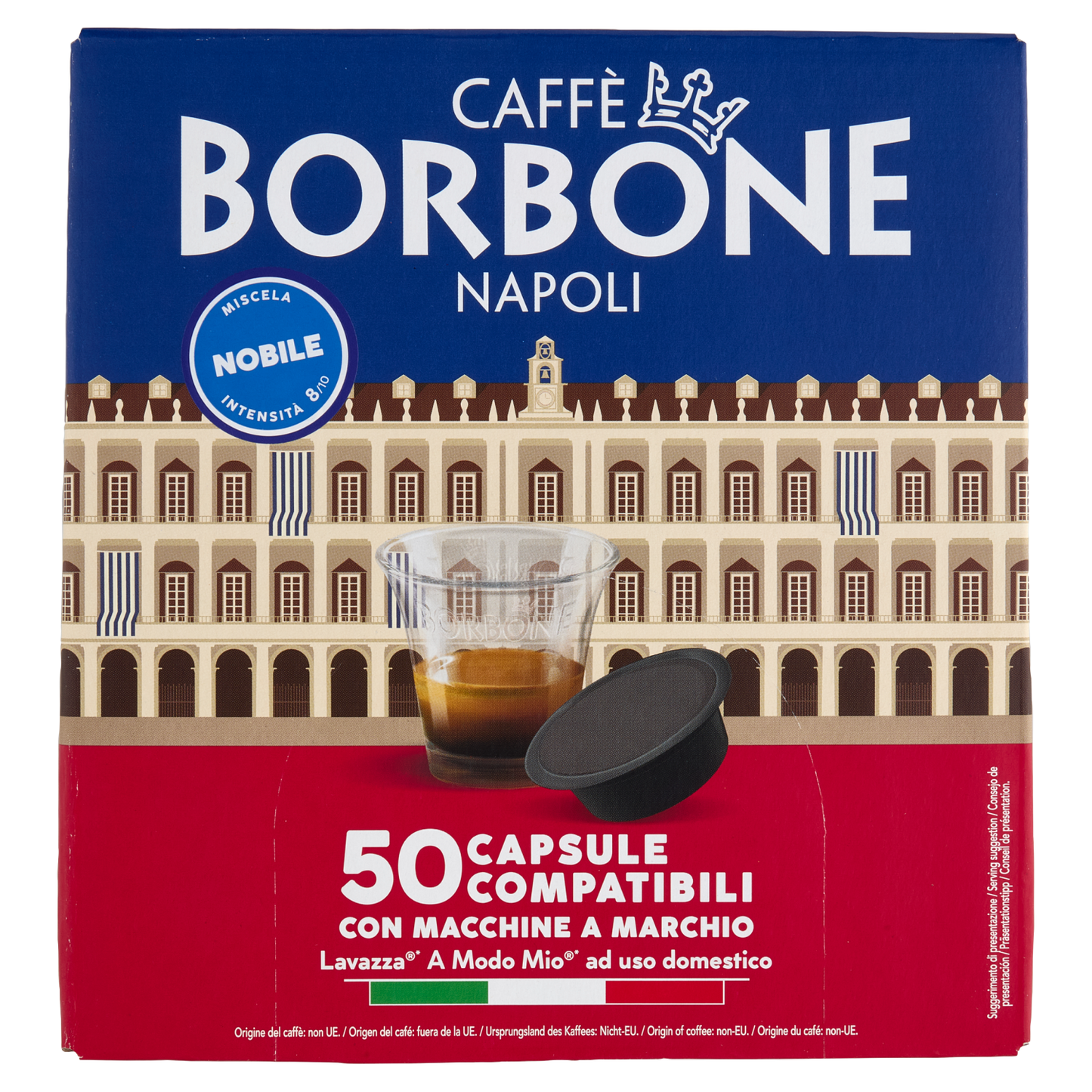 BORBONE NOBILE AMODO MIO CAPS 50pcs offers a premium coffee experience designed for Amodo Mio machines. Each capsule delivers a rich, balanced blend with intense aroma and smooth flavor, ensuring consistent quality in every cup. Ideal for coffee enthusiasts seeking convenience without compromising taste, these capsules provide a refined espresso with a velvety crema, enhancing your daily coffee ritual.