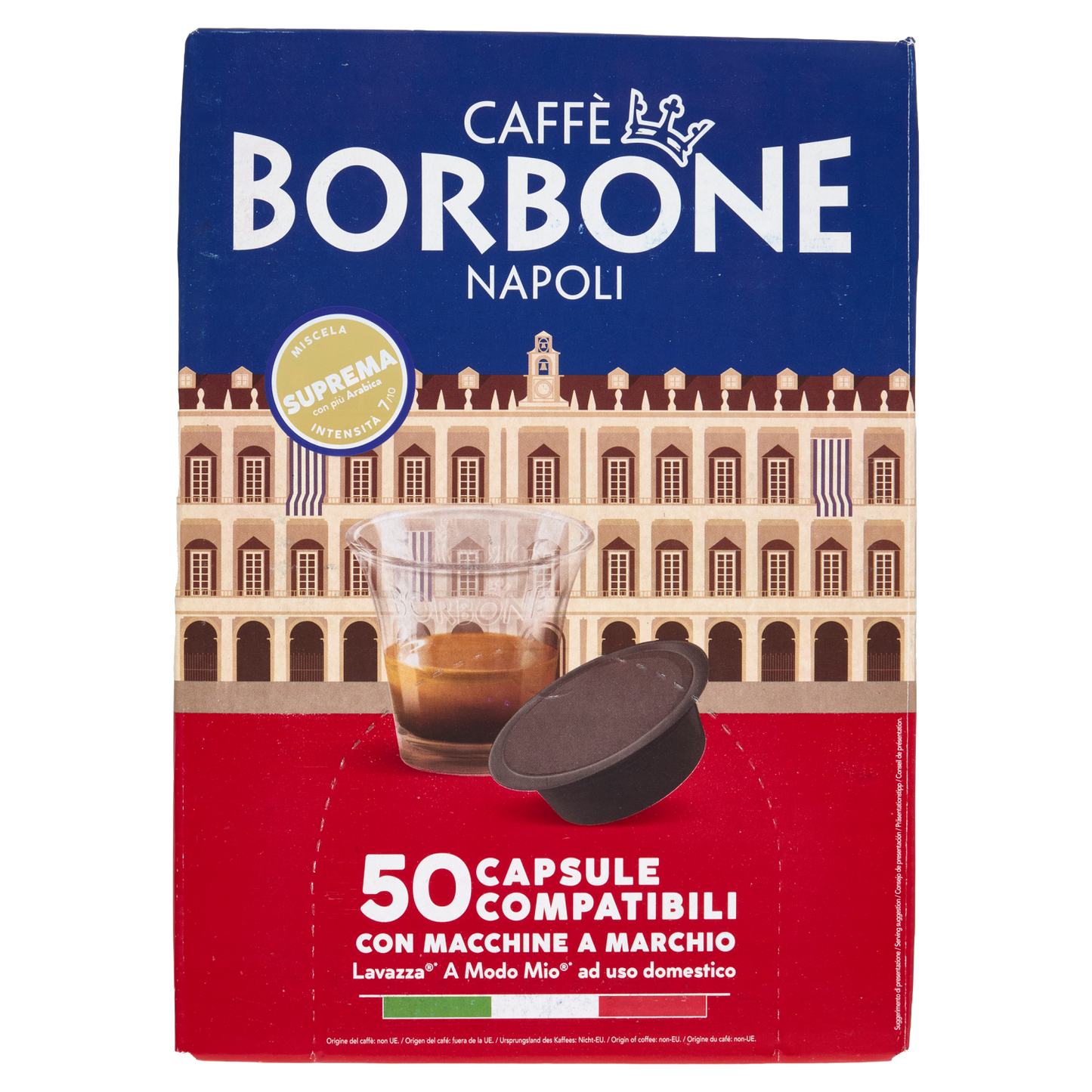 Experience the rich and authentic flavor of Borbone Suprema with this pack of 50 A Modo Mio compatible capsules. Crafted for espresso enthusiasts, these capsules deliver a balanced blend with intense aroma and a smooth, full-bodied taste. Ideal for those seeking a premium coffee experience at home or in the office, each capsule ensures consistent quality and convenience without compromising on flavor. Compatible with A Modo Mio machines, this pack offers excellent value and a reliable way to enjoy expertly roasted coffee every day.