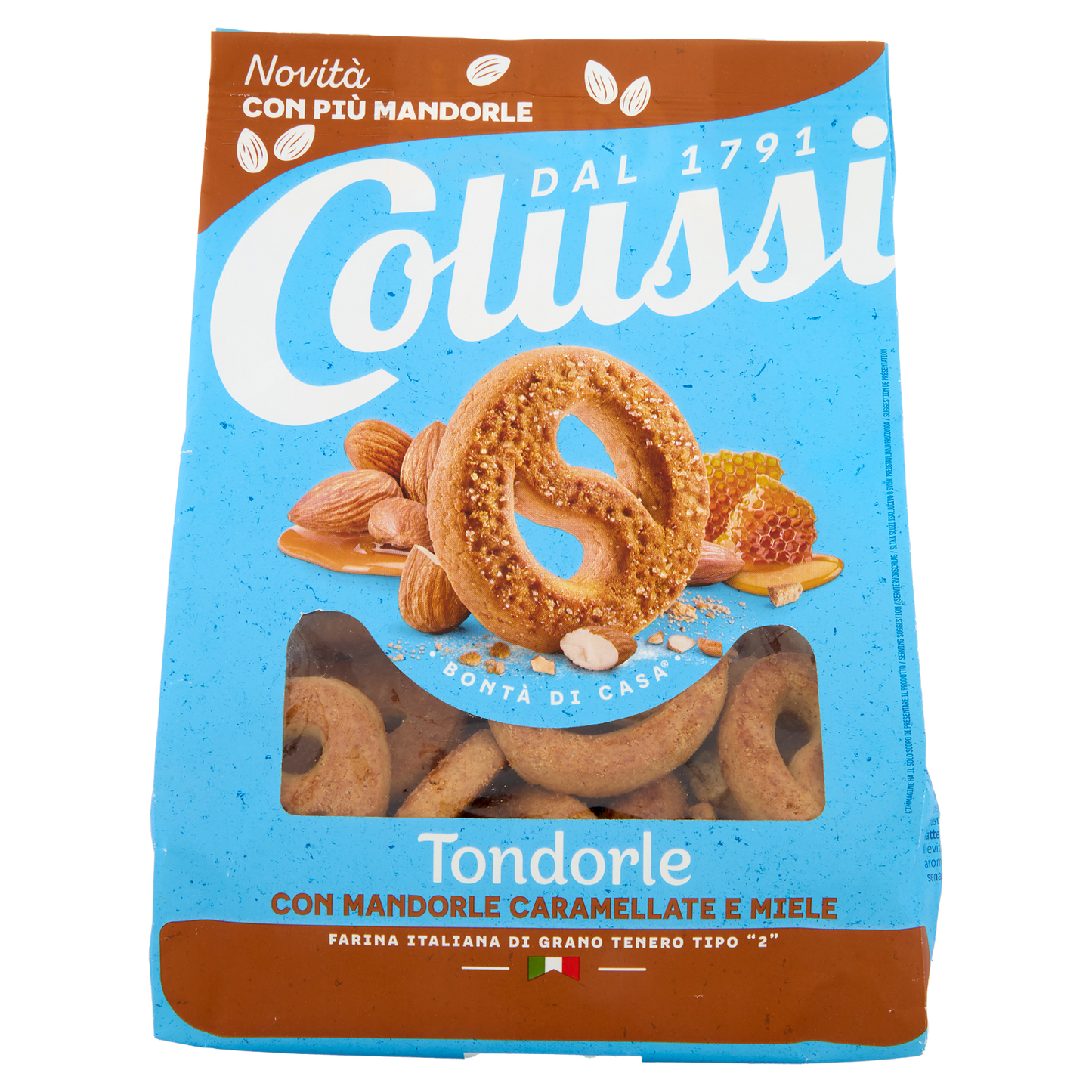 Delight in the rich flavors of COLUSSI Biscotti Miele e Mandorle Caramellate. Each 500g box contains eight carefully crafted biscotti, blending the natural sweetness of honey with the crunch of caramelized almonds. Perfect for pairing with coffee or tea, these biscotti offer a balanced texture and a sophisticated taste experience that highlights quality ingredients and traditional baking expertise. Ideal for those seeking an authentic Italian treat with a refined flavor profile.