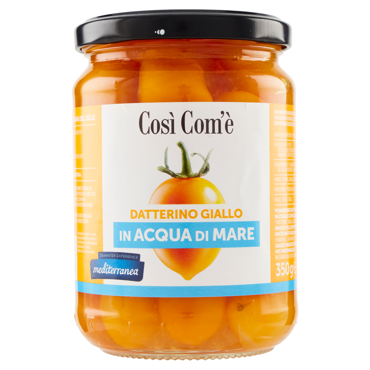 Cosi' Come' Datterino Giallo in Acqua di Mare 350g offers an exceptional taste experience with carefully preserved yellow cherry tomatoes immersed in seawater. This method maintains the natural freshness and enhances the intense, sweet flavors of the tomatoes. Ideal for gourmet dishes, it brings a refined Mediterranean essence to salads, appetizers, and culinary creations. Each box contains 12 jars, ensuring consistent quality and convenience for professional chefs and discerning home cooks seeking authentic ingredients.