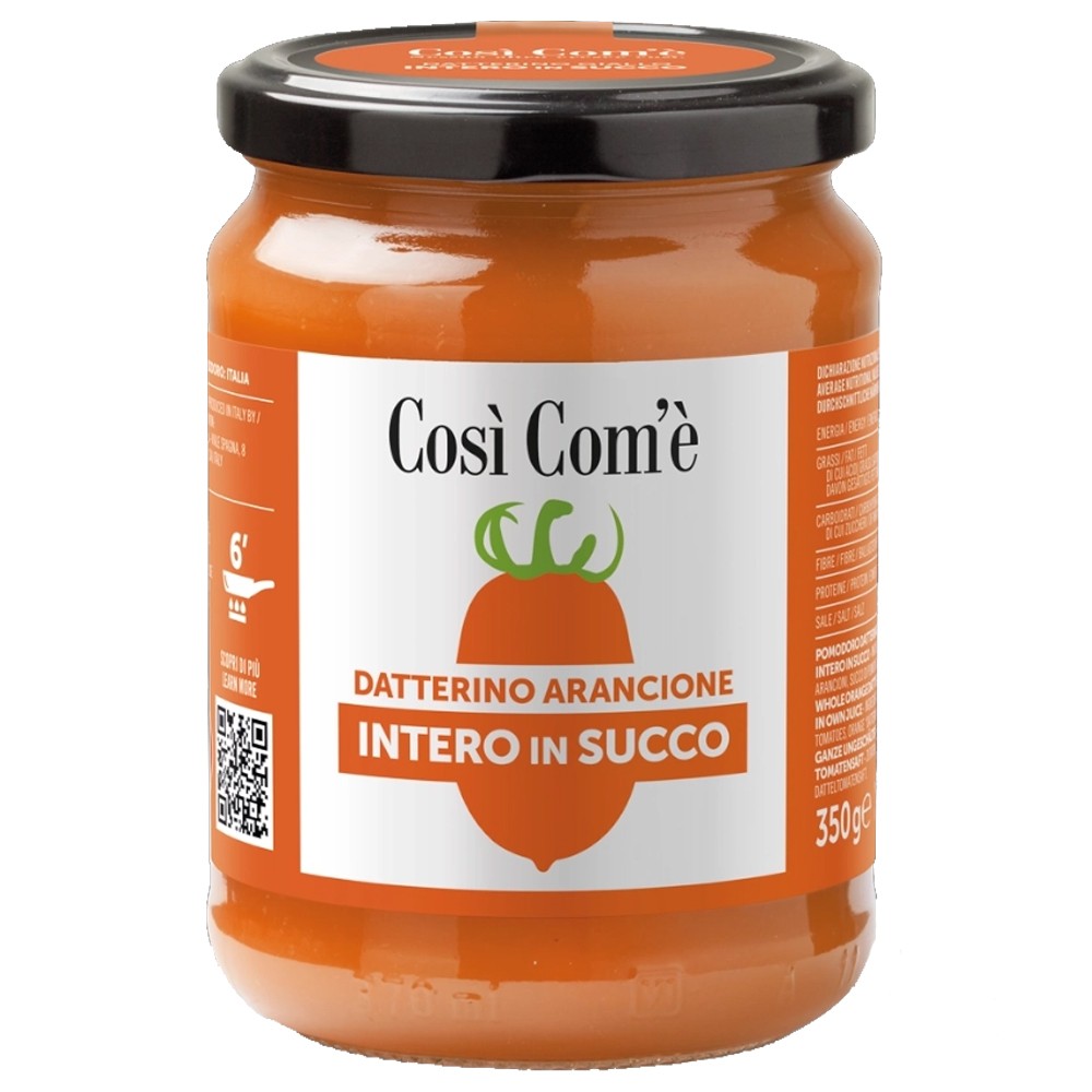 COSICOMÈ Datterino Intero Arancione 350g offers premium quality whole orange datterino tomatoes, carefully selected for optimal ripeness and flavor. Each 350g pack, available in boxes of 12, delivers vibrant color and natural sweetness ideal for enhancing fresh dishes, sauces, and gourmet recipes. Perfect for chefs seeking consistent taste and texture, these tomatoes bring authentic Mediterranean freshness to your culinary creations.
