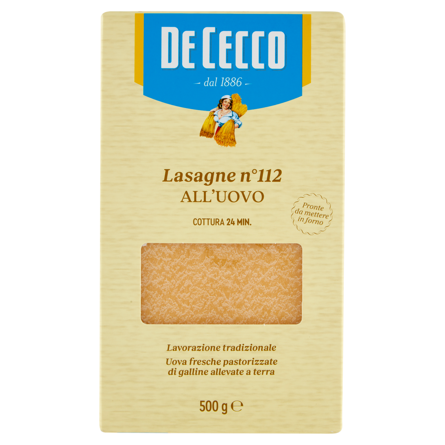 De Cecco Lasagna N°112 All'Uovo 500g offers a premium pasta experience crafted with high-quality durum wheat and fresh eggs. This traditional Italian lasagna sheet delivers excellent texture and rich flavor, ideal for creating authentic layered dishes. Its consistent thickness ensures even cooking and perfect absorption of sauces, making it a reliable choice for both professional chefs and home cooks seeking genuine Italian taste. Packaged in a 500g portion, it provides convenience and quality for multiple servings.