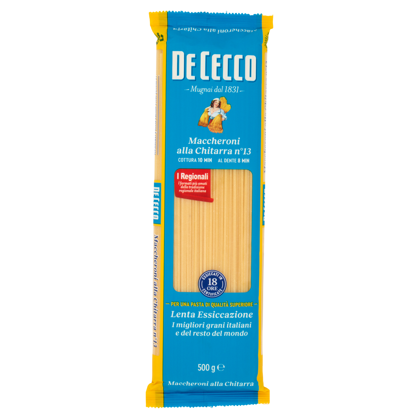 De Cecco Maccheroni Chitarra N.13 offers authentic Italian pasta crafted with traditional methods for superior texture and flavor. Made from high-quality durum wheat semolina, this 500g pack delivers firm, al dente results ideal for rich sauces. Its distinctive square shape, created using the "chitarra" technique, ensures excellent sauce adherence, enhancing every bite. Perfect for chefs seeking genuine Italian quality and consistency in their pasta dishes. Available in a box of 24 packs, it suits both professional kitchens and serious home cooks.
