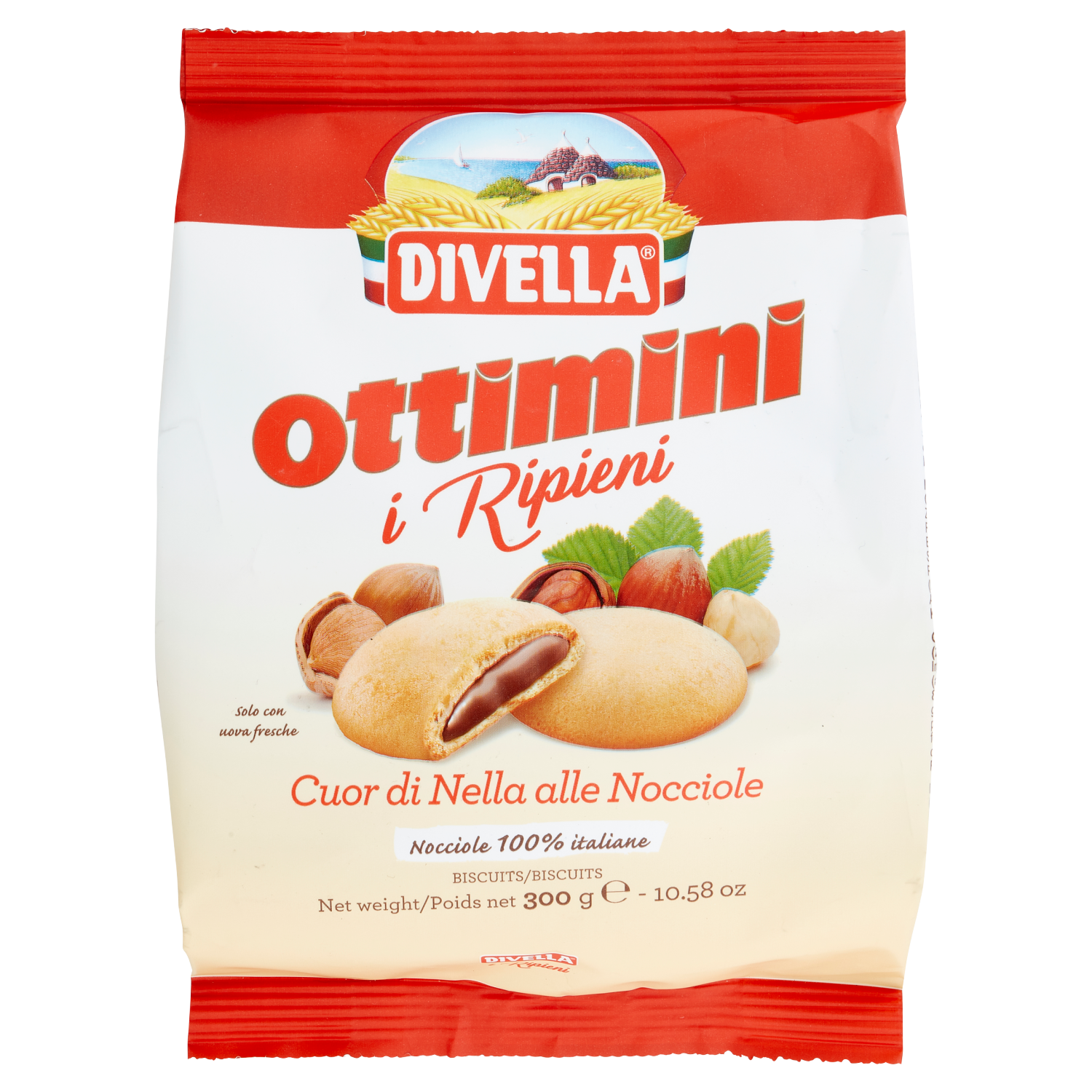 DIVELLA Ottimini Cuore di Nella Ripieni Nocciole 300g offers a refined Italian biscuit experience, featuring delicate, heart-shaped cookies filled with rich hazelnut cream. Perfect for pairing with coffee or tea, these biscuits combine traditional craftsmanship with premium ingredients to deliver a balanced, satisfying flavor. Packaged in a convenient 300g size, ideal for sharing or gifting, they bring authentic Italian taste to any occasion.