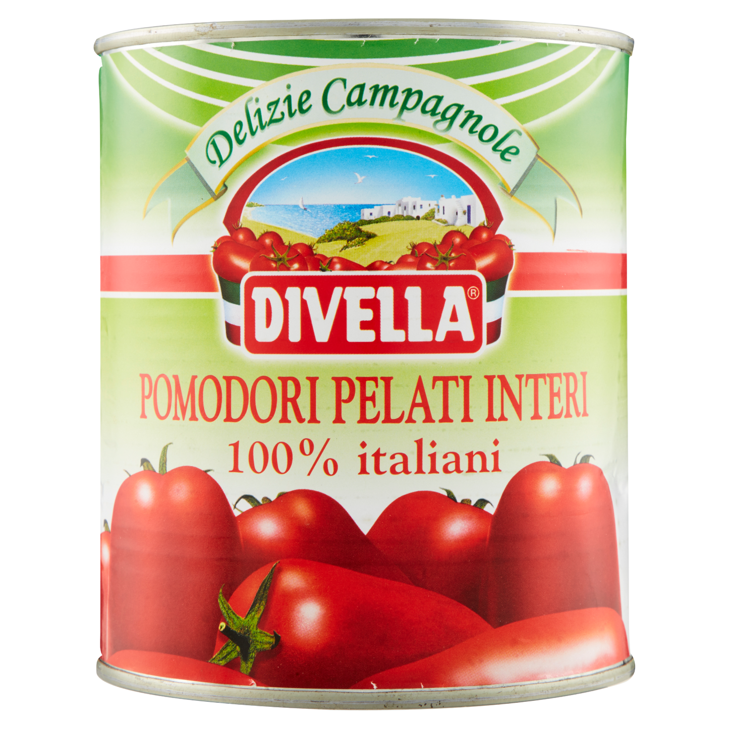 Divella Pomodori Pelati Interi 800g offers whole peeled tomatoes in a convenient 800g can, ideal for authentic Italian cooking. Perfect for sauces, stews, and soups, these tomatoes retain their natural flavor and texture, ensuring a rich and fresh taste in every dish. Sold in a box of 12, they provide consistent quality and value for both home chefs and professional kitchens.