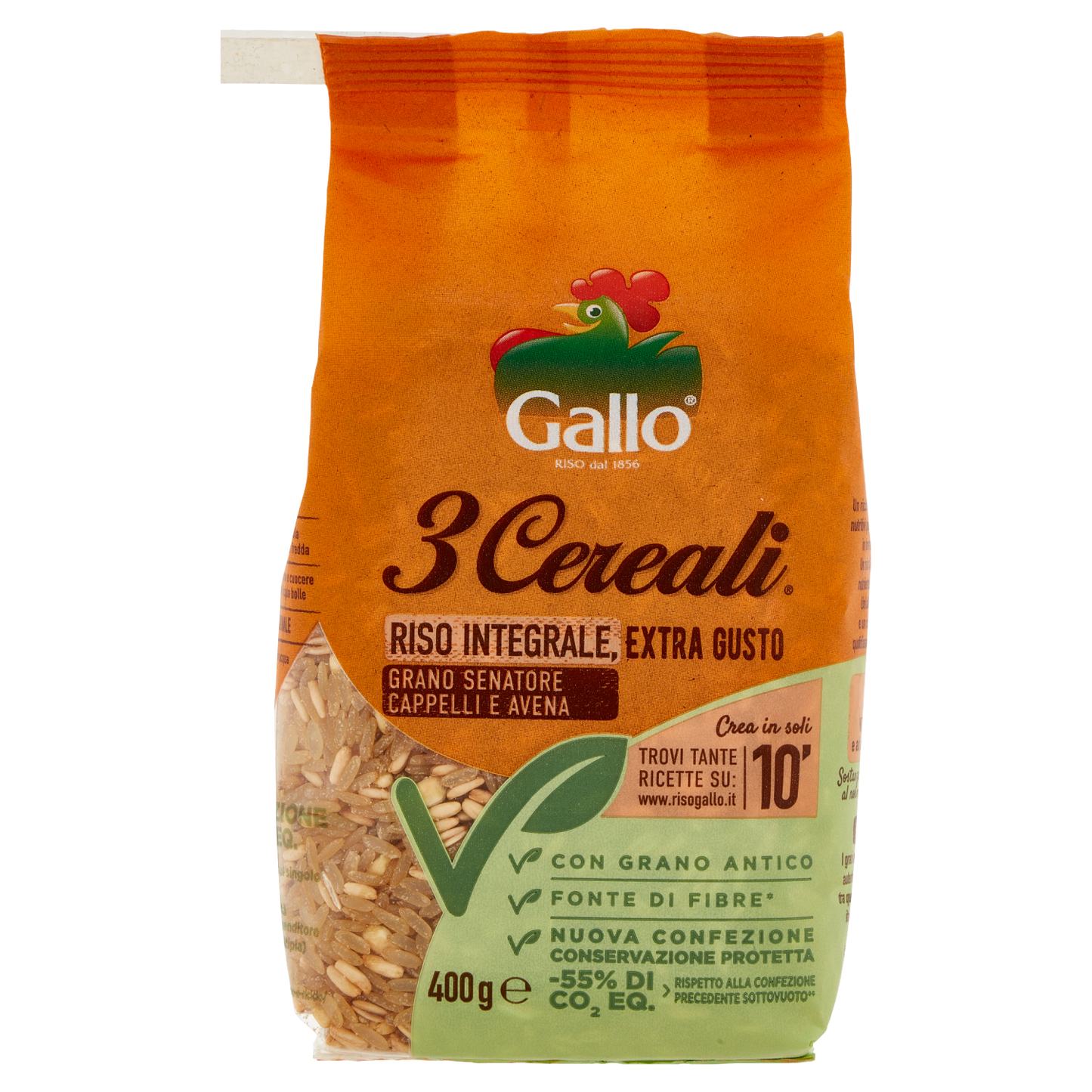 GALLO RISO 3 CEREALI combines rice, oats, and Kamut in a perfectly balanced blend delivering a nutritious base for versatile meals. This 400g pack offers whole grains rich in fiber and essential nutrients to support digestive health and sustained energy. Ideal for those seeking wholesome, natural ingredients in everyday cooking or specialized diets.