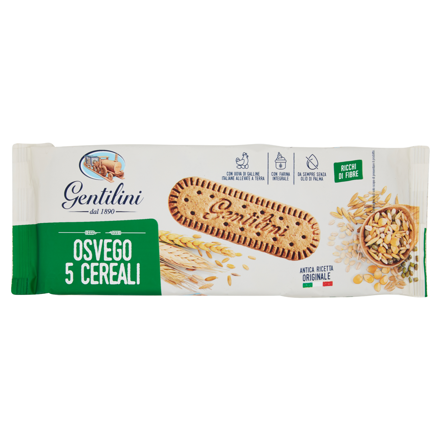 GENTILINI BISCOTTI OSVEGO AI CEREALI 250g offers a refined blend of cereals in a crisp, artisanal biscuit. Each box contains 14 carefully crafted pieces, delivering a balanced texture and rich flavor profile ideal for pairing with coffee or tea. This product exemplifies traditional Italian baking expertise, ensuring quality and authenticity in every bite. Perfect for those seeking a sophisticated snack with wholesome ingredients.