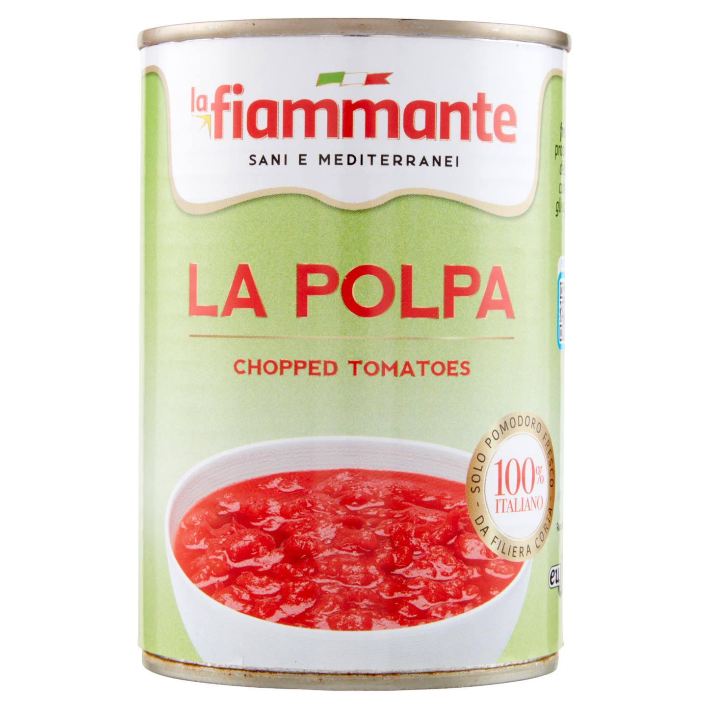 LA FIAMMANTE POLPA DI POMODORO 400g offers premium-quality peeled tomato pulp, ideal for authentic Italian cooking. Each 400g can delivers rich, naturally sweet tomato flavor with a smooth texture, perfect for sauces, soups, and stews. Sold in a box of 24, it ensures consistent supply for professional kitchens or serious home chefs seeking genuine taste and reliable quality.
