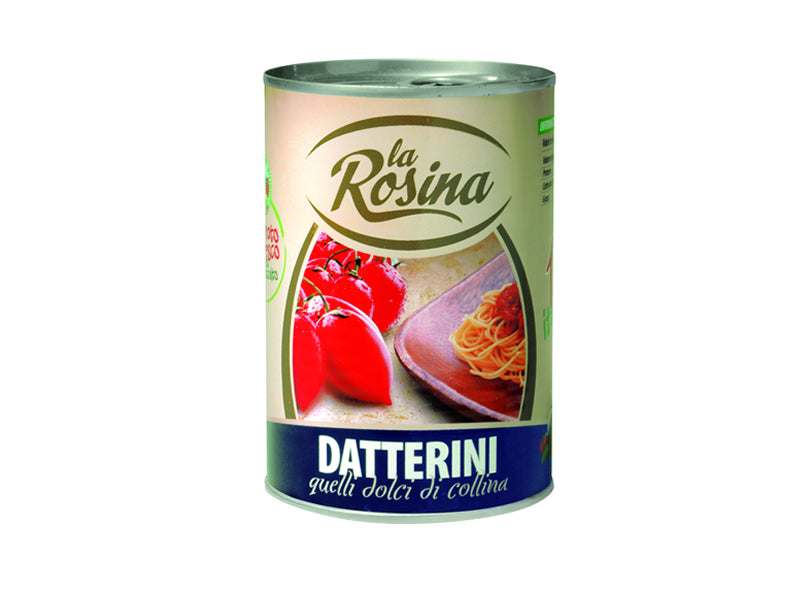 LA ROSINA DATTERINI tomatoes come in a 400g pack, with 24 boxes per case—ideal for professional kitchens and foodservice suppliers seeking consistent quality and flavor. These tomatoes offer a perfect balance of sweetness and acidity, enhancing sauces, salads, and gourmet recipes with authentic Italian taste. Their compact size and firm texture ensure easy handling and superior cooking performance.