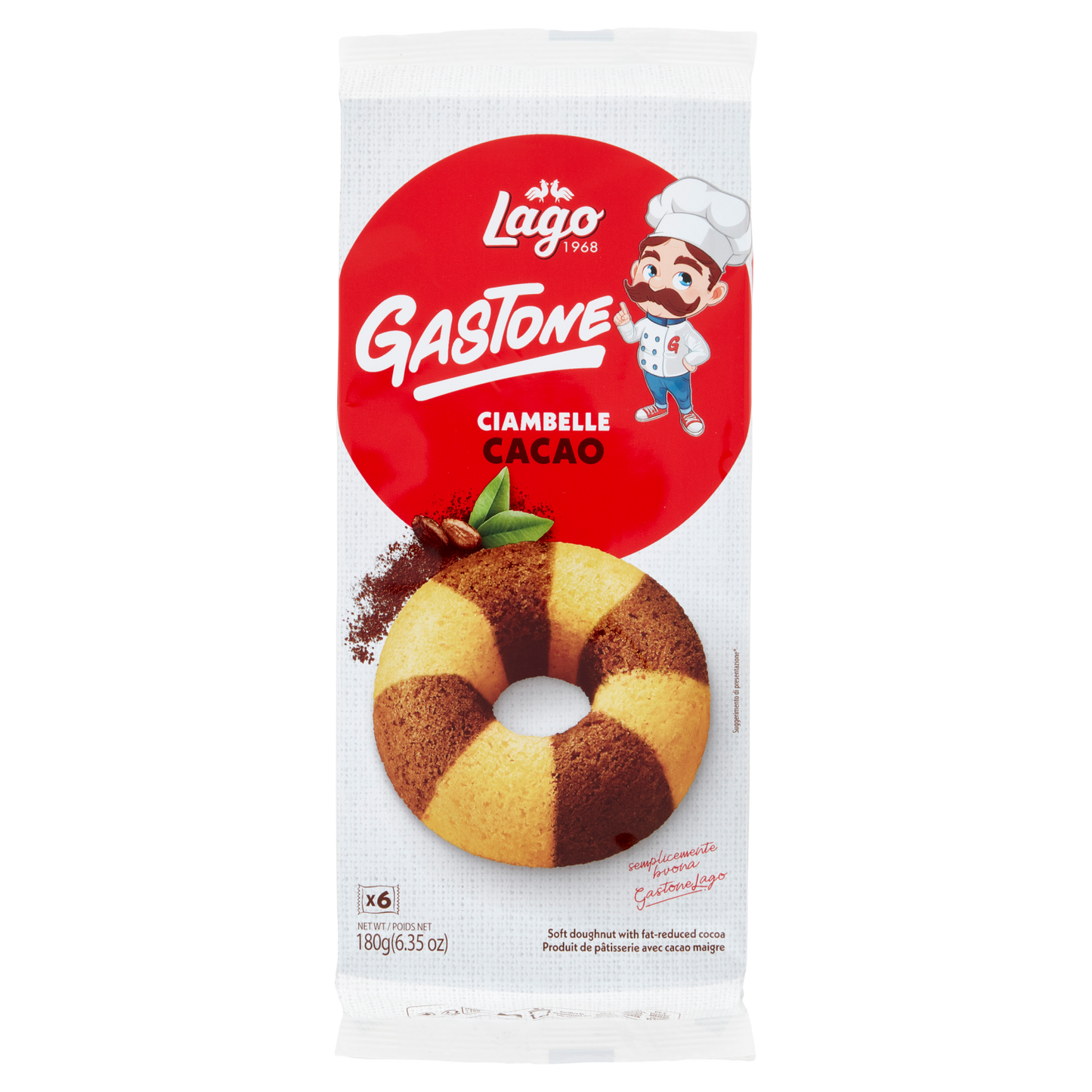 LAGO Ciambella Cacao X6 offers six individually wrapped cocoa-flavored ring cakes, each weighing 180g. Packaged in a box of 12, these cakes combine rich cocoa taste with a soft, moist texture, ideal for a refined snack or dessert option. Their convenient portioning supports easy sharing or storage, making them suitable for both personal enjoyment and professional catering needs.