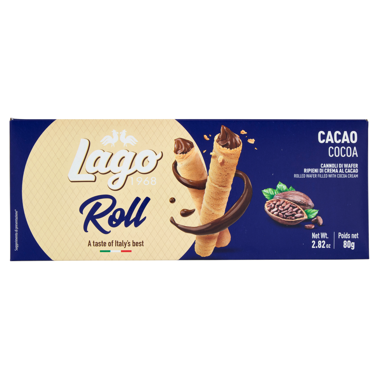 LAGO ROLL CACAO 80g offers a rich, intense chocolate experience crafted for discerning palates. Each 80g roll delivers a balanced cocoa flavor, ideal for gourmet applications or indulgent snacking. Packaged in a box of 24, it ensures consistent quality and convenience for professional use or retail. This product is designed to meet high standards of taste and texture, making it a reliable choice for chocolatiers and connoisseurs alike.