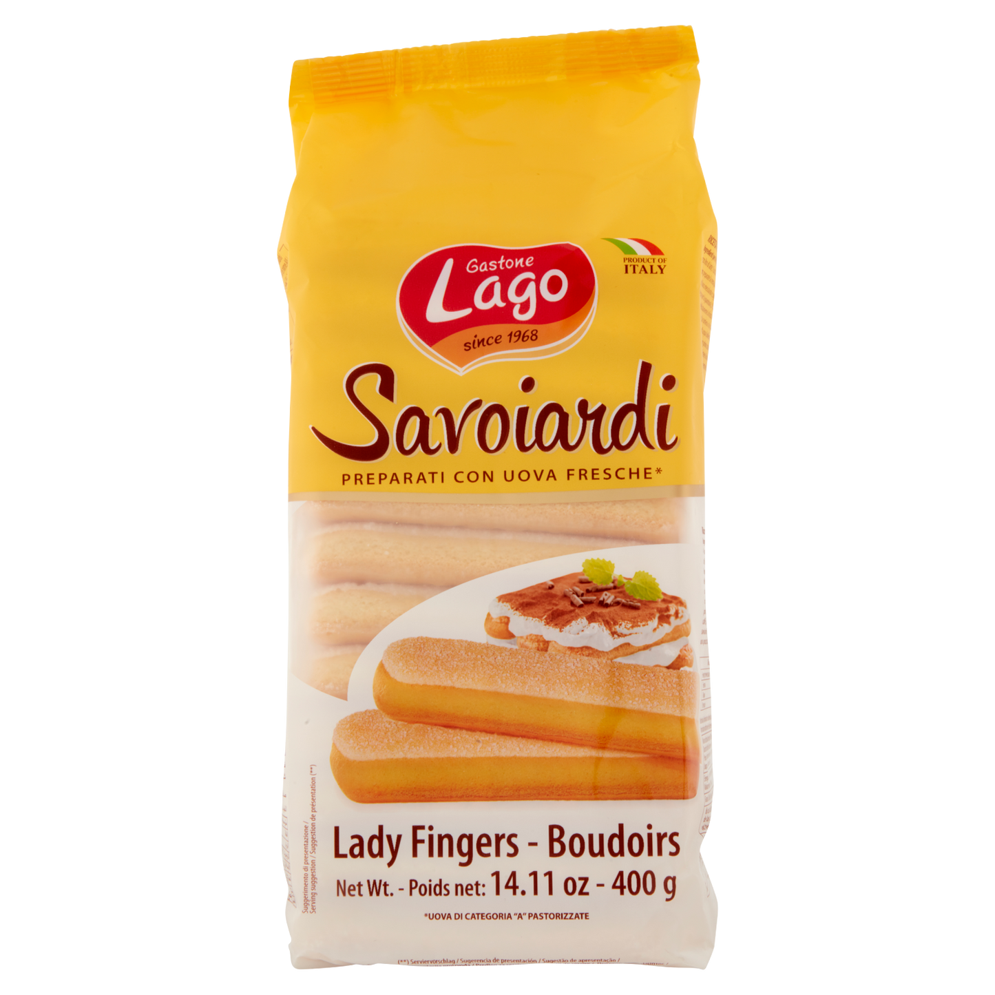 LAGO Savoiardi 400g offers ten expertly crafted ladyfinger biscuits, perfect for traditional desserts like tiramisu or as a delicate snack. Their light, crisp texture and balanced sweetness make them ideal for soaking up flavors without losing structure, ensuring a refined culinary experience. Packaged in a convenient box, they maintain freshness and quality for your professional or home baking needs.
