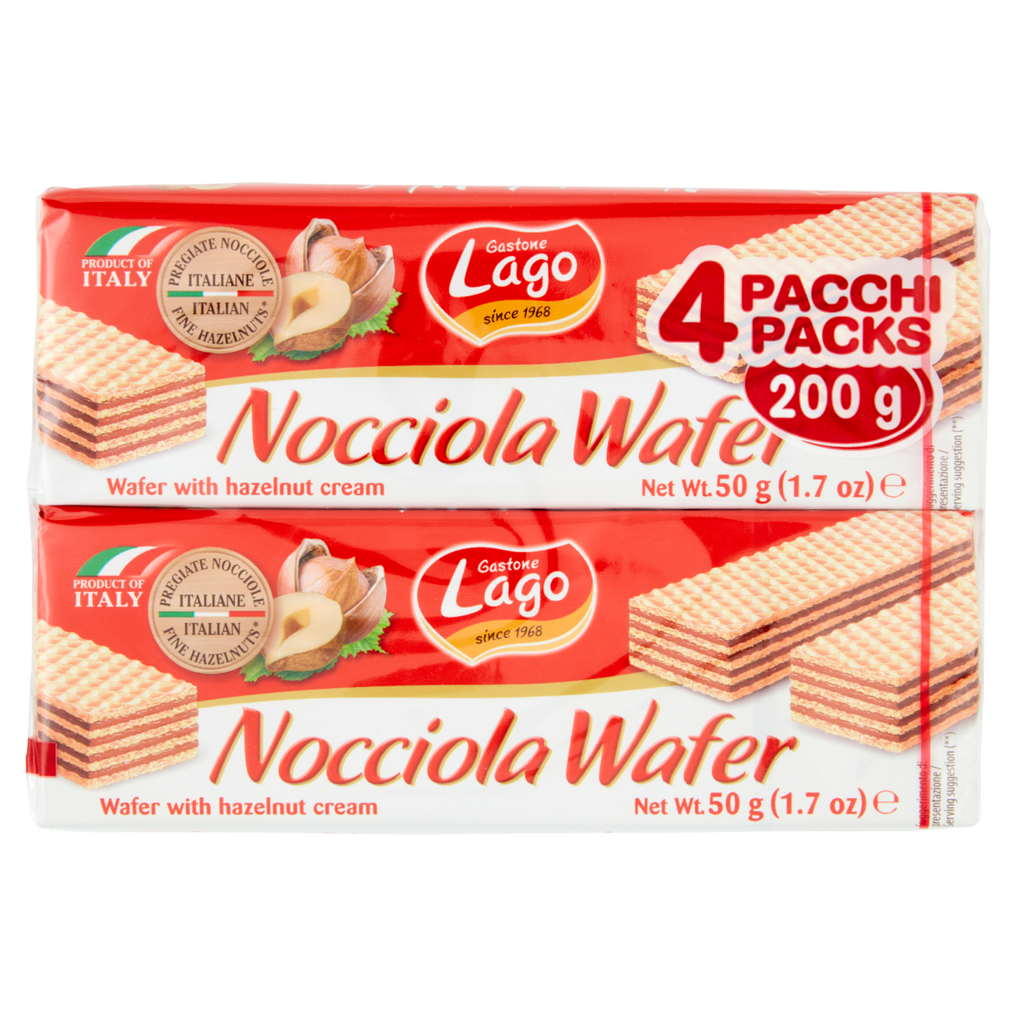 LAGO WAFER NOCCIOLA 50gX4 offers a premium selection of crisp wafers filled with rich hazelnut cream. Each pack contains four 50g portions, ideal for sharing or savoring individually. Perfectly balanced, these wafers deliver a satisfying texture and authentic hazelnut flavor, making them a refined choice for connoisseurs seeking quality and indulgence in every bite. With 32 packs per box, they are suitable for both personal enjoyment and professional catering needs.