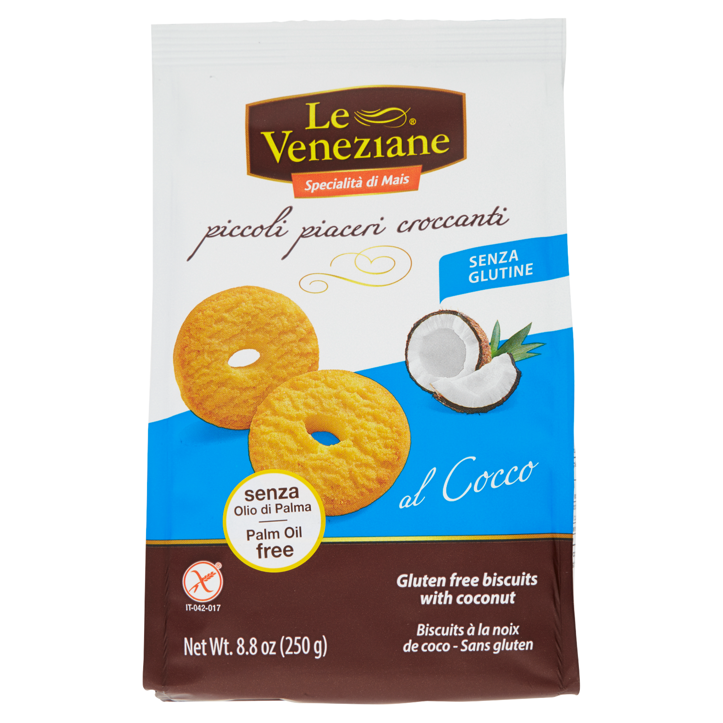 LE VENEZIANE Biscotti Cocco offers a refined blend of traditional Italian craftsmanship and premium coconut flavor. Each 250g box contains nine carefully baked biscuits, delivering a perfect balance of crisp texture and natural sweetness. Ideal for pairing with coffee or tea, these biscotti provide an authentic taste experience that highlights quality ingredients and artisanal baking techniques.
