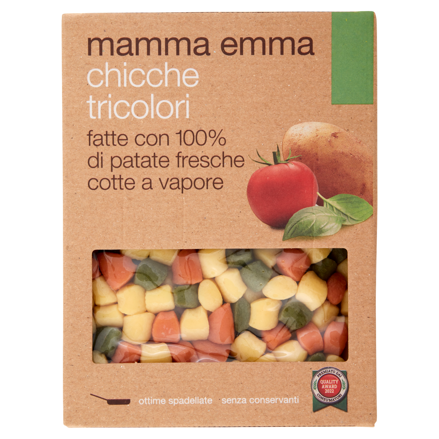 MAMMA EMMA CHICCHE TRICOLORE 400g offers a premium selection of traditional Italian pasta with authentic tricolore colors. Each 400g package contains six individually boxed portions, ideal for precise portion control and convenience. Crafted to deliver an authentic taste, this product combines quality ingredients to enrich your culinary creations, making it perfect for both home chefs and professional kitchens seeking consistent flavor and presentation.