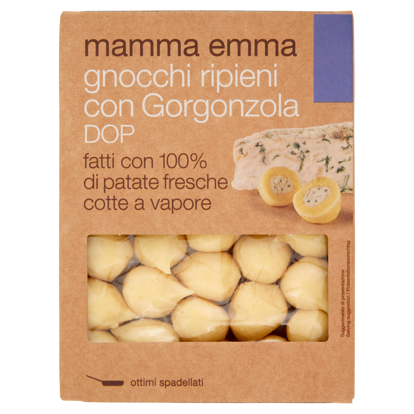 MAMMA EMMA GNOCCHI GORGONZOLA 350g (6 in a box) offers a refined blend of soft potato gnocchi paired with the distinctive creaminess of Gorgonzola cheese. Each 350g portion delivers an authentic Italian experience, ideal for creating elegant, flavorful dishes with minimal preparation. Packaged in a convenient set of six, this product suits both professional kitchens and gourmet home cooks seeking quality and consistency in their pasta offerings.