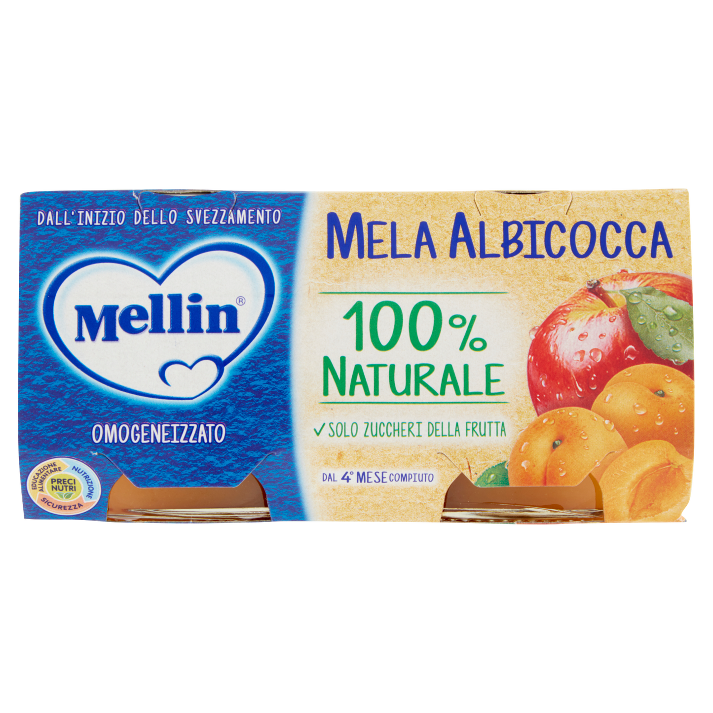 Mellin Omogeneizzato alla Frutta Albicocca offers a carefully crafted apricot fruit puree, ideal for introducing natural flavors to your baby's diet. Each 100g jar provides a smooth texture and balanced taste, supporting early nutrition with wholesome fruit content. Sold in packs of two, this product ensures convenience and freshness, making it a reliable choice for parents seeking quality fruit-based baby food.