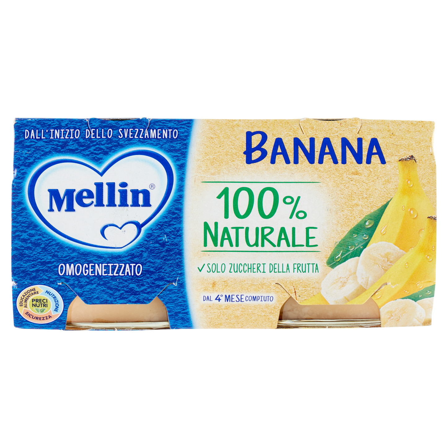 MELLIN OMOGENEIZZATO BANANA offers a smooth, finely blended banana puree ideal for infants. Each 100g pack provides a natural source of essential nutrients and gentle flavor, supporting early taste development and digestion. Sold in a convenient pack of two (200g total) and available in boxes of 12, this product ensures consistent quality and freshness for your little one’s nutritional needs.