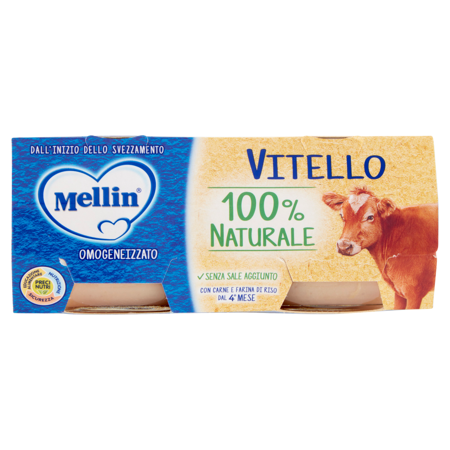 MELLIN OMOGENEIZZATO VITELLO offers a carefully prepared veal puree, packaged in convenient 80g portions, with two servings per pack totaling 160g. Designed for infants, this product provides a smooth texture and balanced nutrition, supporting healthy growth and easy digestion. Ideal for parents seeking a reliable and expert-recommended option for introducing veal into their baby's diet. The box contains 12 packs, ensuring freshness and practicality for daily feeding routines.