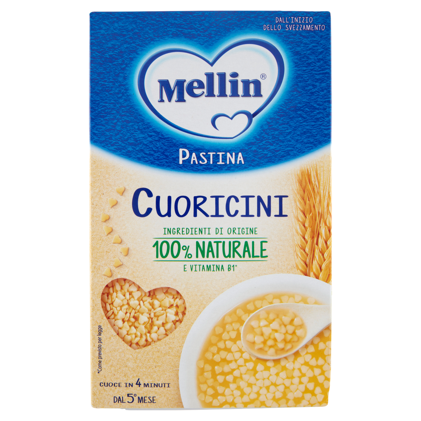 Mellin Pastina Cuoricini 350g offers small, heart-shaped pasta pieces ideal for preparing nutritious meals for infants and toddlers. Crafted to be gentle on young digestive systems, this pasta supports easy chewing and swallowing. Its convenient 350g packaging, available in a box of 12, ensures consistent quality and portion control for caregivers focused on balanced early nutrition.