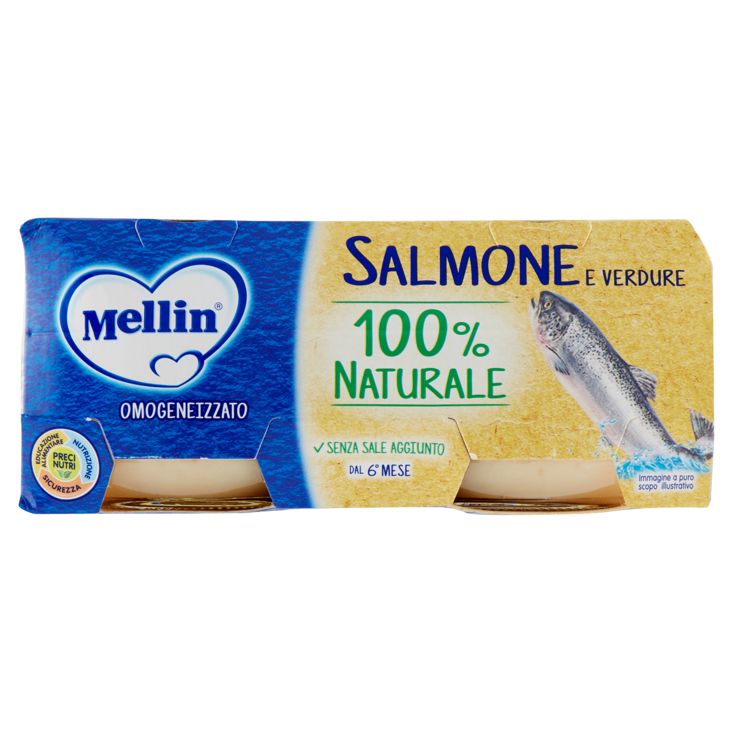 MELLIN SALMONE offers a convenient pack of two 80g portions, totaling 160g, ideal for balanced nutrition. Designed for easy serving, this product ensures consistent quality and freshness, making it suitable for those seeking reliable, expert-approved food options. The box contains 12 units, perfect for stocking up or sharing.