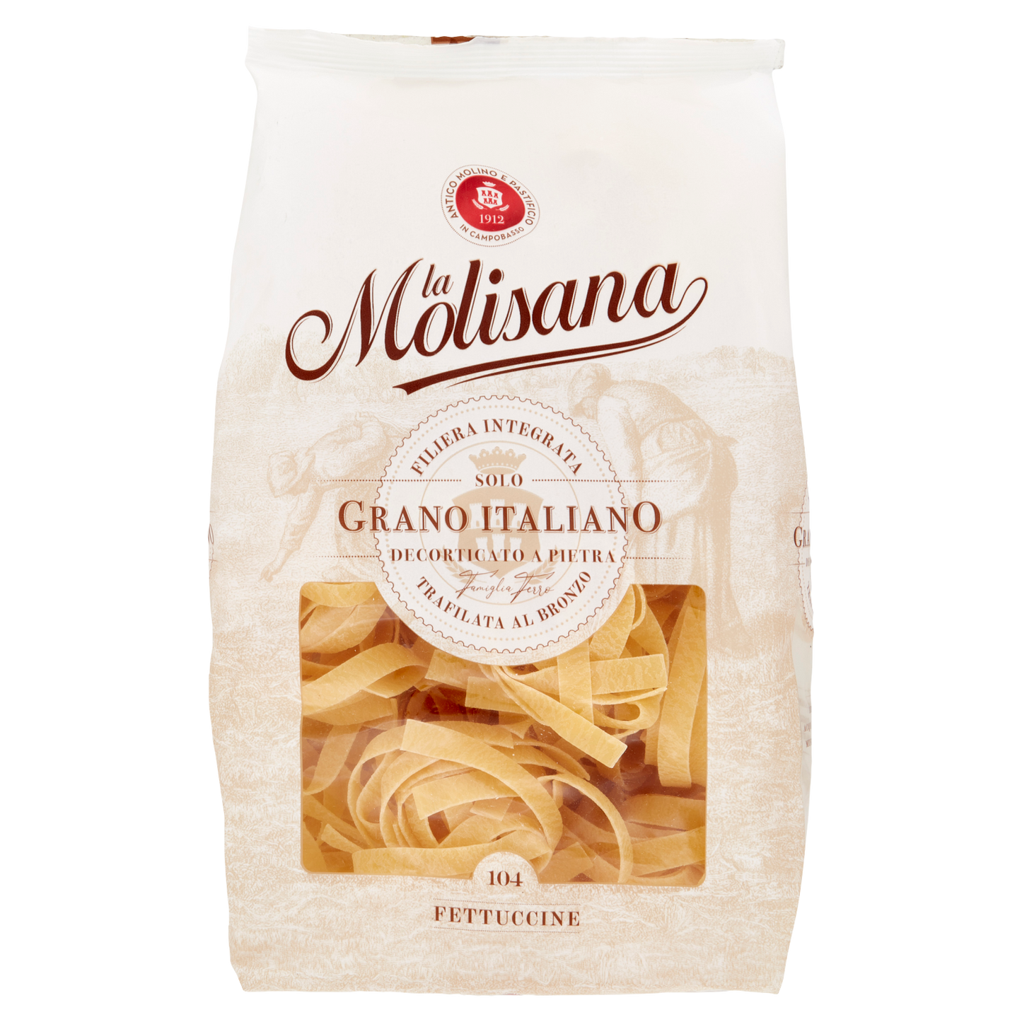 Molisana Fettuccine N°104 Integrali offers a wholesome twist on a classic pasta shape. Made from whole durum wheat semolina, this 500g pack preserves the grain's natural fiber and nutrients, supporting digestive health and sustained energy. Its slightly nutty flavor and firm texture hold sauces exceptionally well, enhancing both simple and rich dishes. Ideal for those seeking nutritious, authentic Italian pasta with a refined culinary profile, this product comes in a convenient box of 12 packs, perfect for both professional kitchens and discerning home cooks.