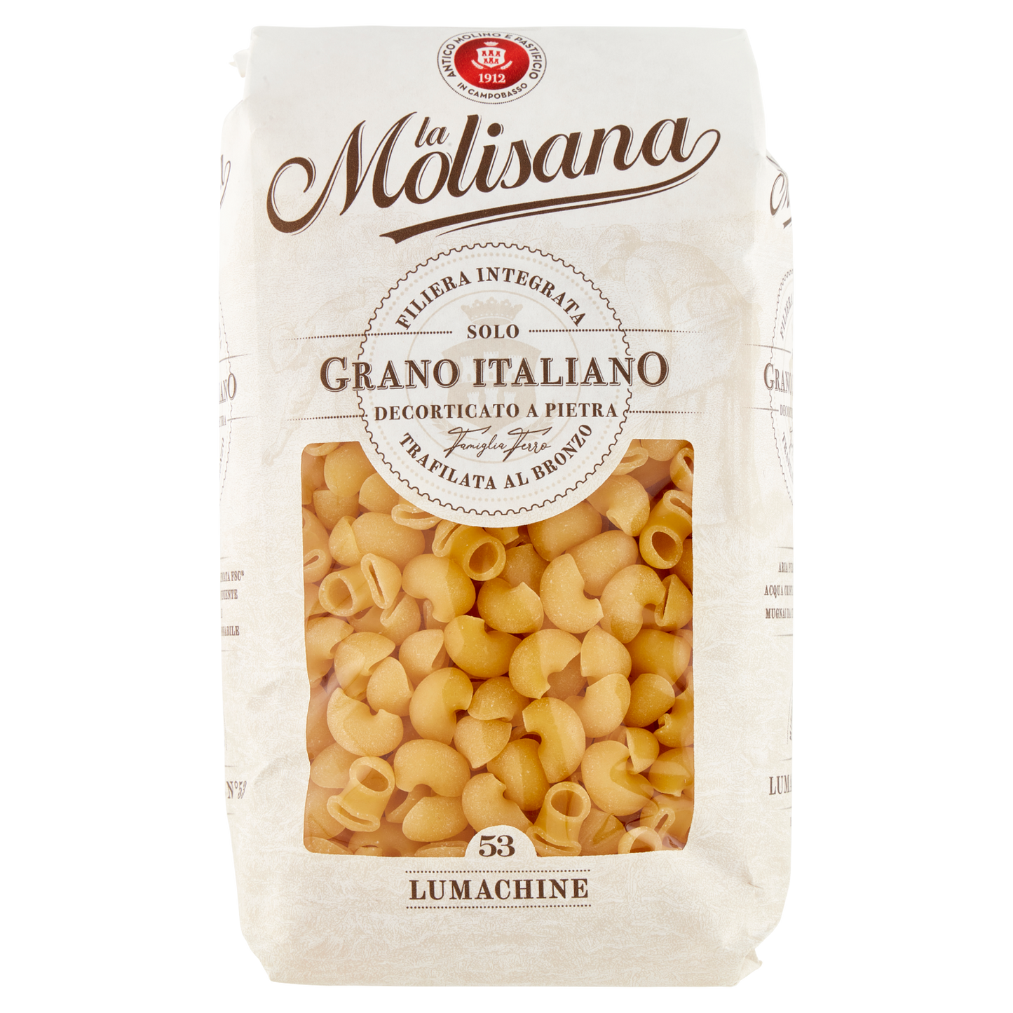 Molisana Lumachine N.53 pasta offers a distinctive shell shape ideal for capturing rich sauces and enhancing every bite. Crafted using high-quality durum wheat semolina, this 500g package delivers excellent texture and firmness when cooked. Perfect for professional kitchens, the 24-pack box ensures consistent supply for culinary creativity and reliable portion control. Elevate your pasta dishes with this premium Italian product designed for authentic taste and superior performance.