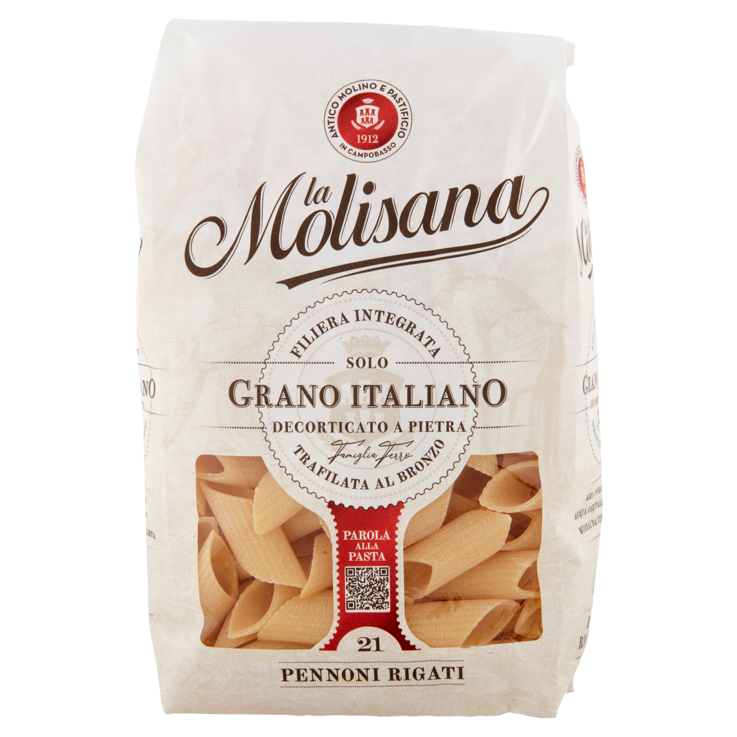 Molisana Pennoni Rigati 500g offers a premium-quality pasta experience with its perfectly ridged, hollow penne shape designed to hold sauces effectively. Crafted from carefully selected durum wheat semolina, it ensures an ideal al dente texture and rich flavor. Each box contains 24 packs, making it ideal for professional kitchens or bulk use. This pasta maintains consistent cooking performance and pairs well with a variety of sauces, enhancing any Italian dish with authentic texture and taste.