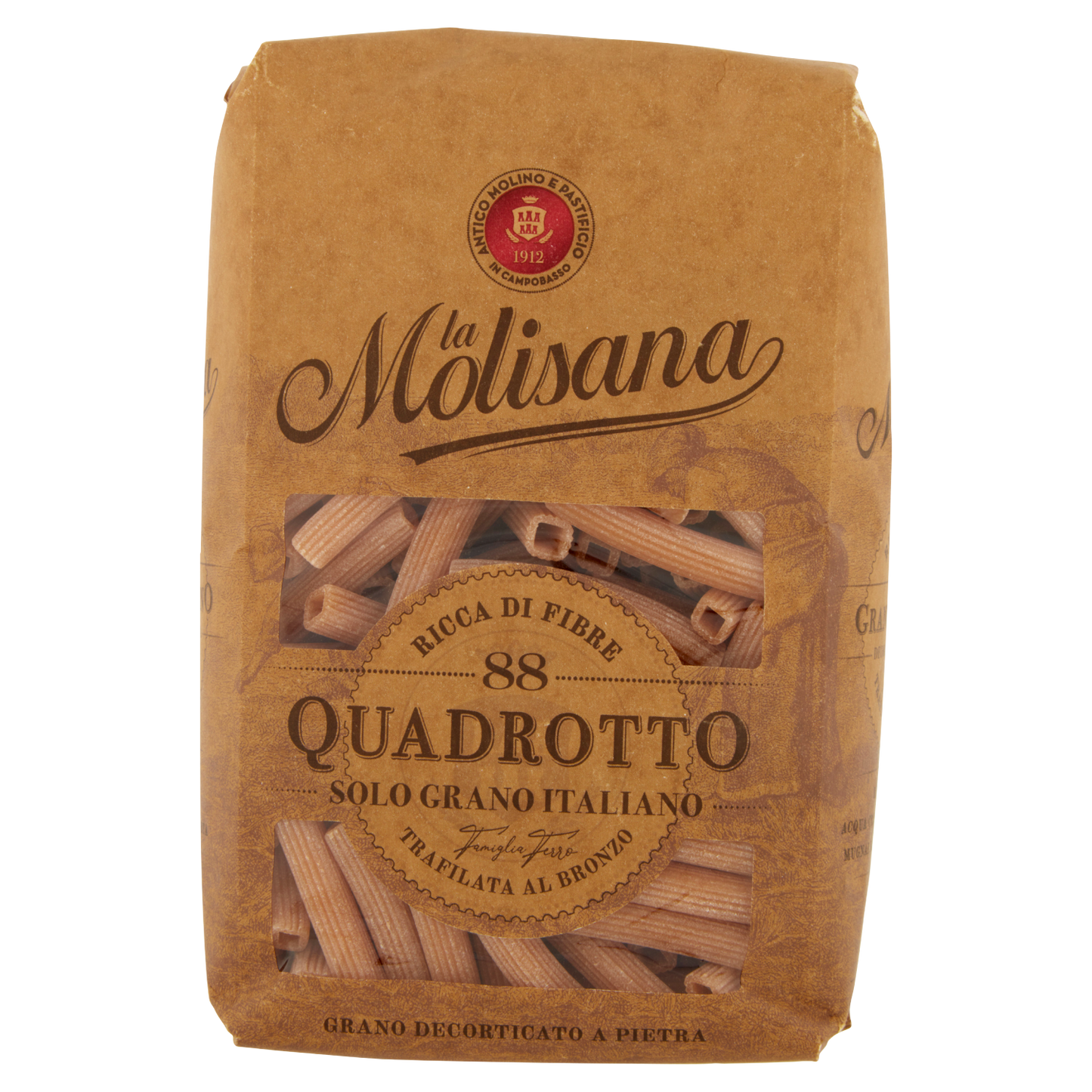 Molisana Quadrotto Integrale is a whole wheat pasta crafted to deliver both nutrition and authentic Italian flavor. Made from carefully selected whole durum wheat semolina, it offers a rich source of fiber and essential nutrients. The distinctive square shape holds sauces exceptionally well, enhancing the dining experience. Ideal for health-conscious consumers seeking a balanced diet without sacrificing taste or texture. Each 500g package, available in a box of 12, ensures quality and consistency for both home and professional kitchens.