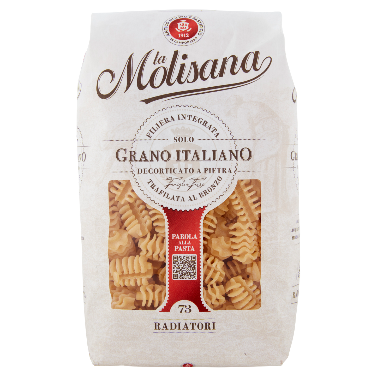 Molisana Radiatori N.73 offers a unique pasta shape designed to hold sauces effectively, enhancing flavor with every bite. This 500g pack, sold in a box of 24, is ideal for professional kitchens seeking consistency and quality. Crafted for optimal texture, Radiatori pasta’s ridged, radiator-inspired form ensures excellent sauce adhesion, making it perfect for rich, hearty dishes. Its sturdy structure maintains bite firmness after cooking, delivering an authentic Italian pasta experience every time.