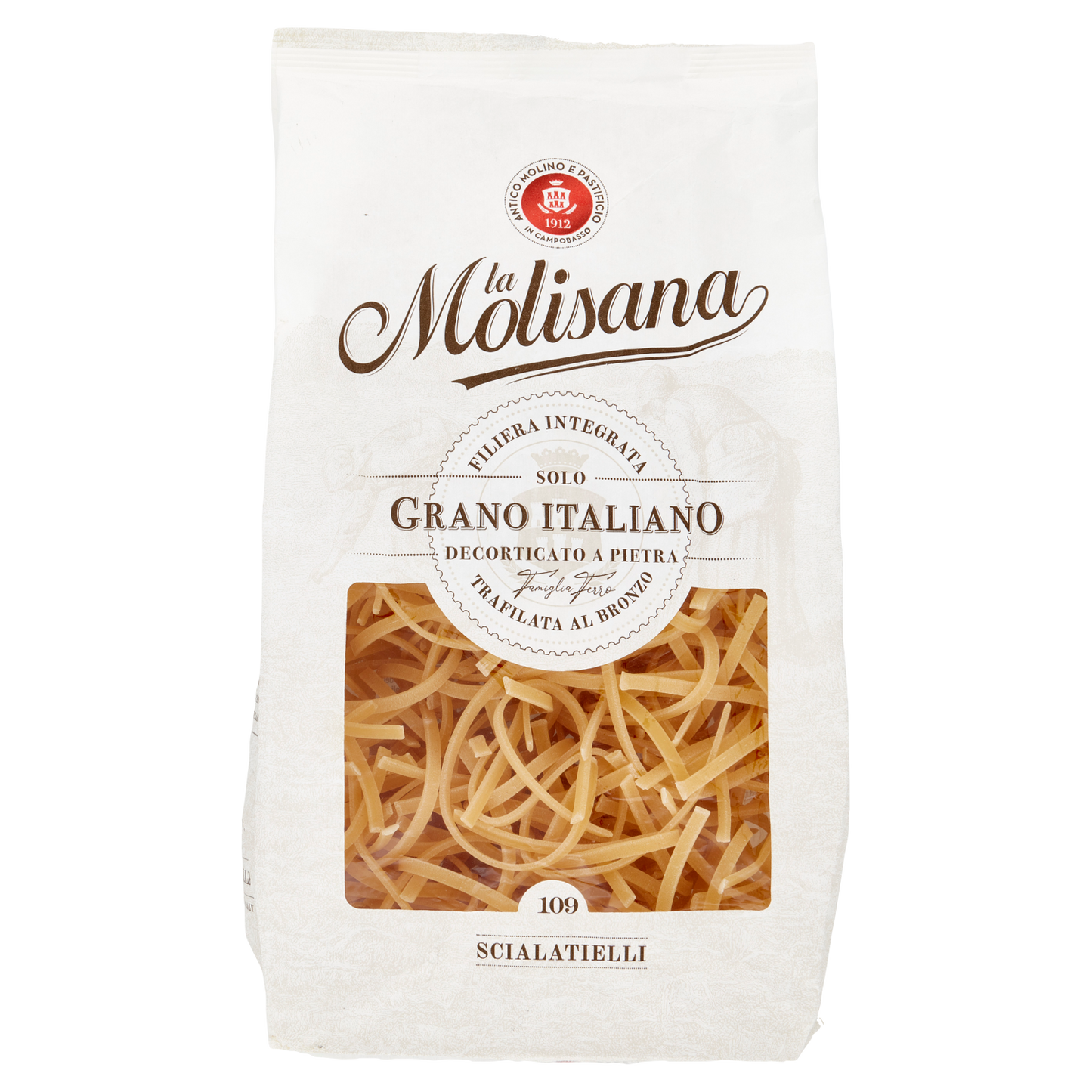 Molisana Scialatielli 500g offers an authentic southern Italian pasta experience with its short, thick strands perfect for absorbing rich sauces. Crafted with high-quality durum wheat semolina, this pasta maintains a firm, al dente texture when cooked. Ideal for traditional seafood or cream-based dishes, each box contains 12 packs, ensuring ample supply for professional kitchens or gourmet enthusiasts.