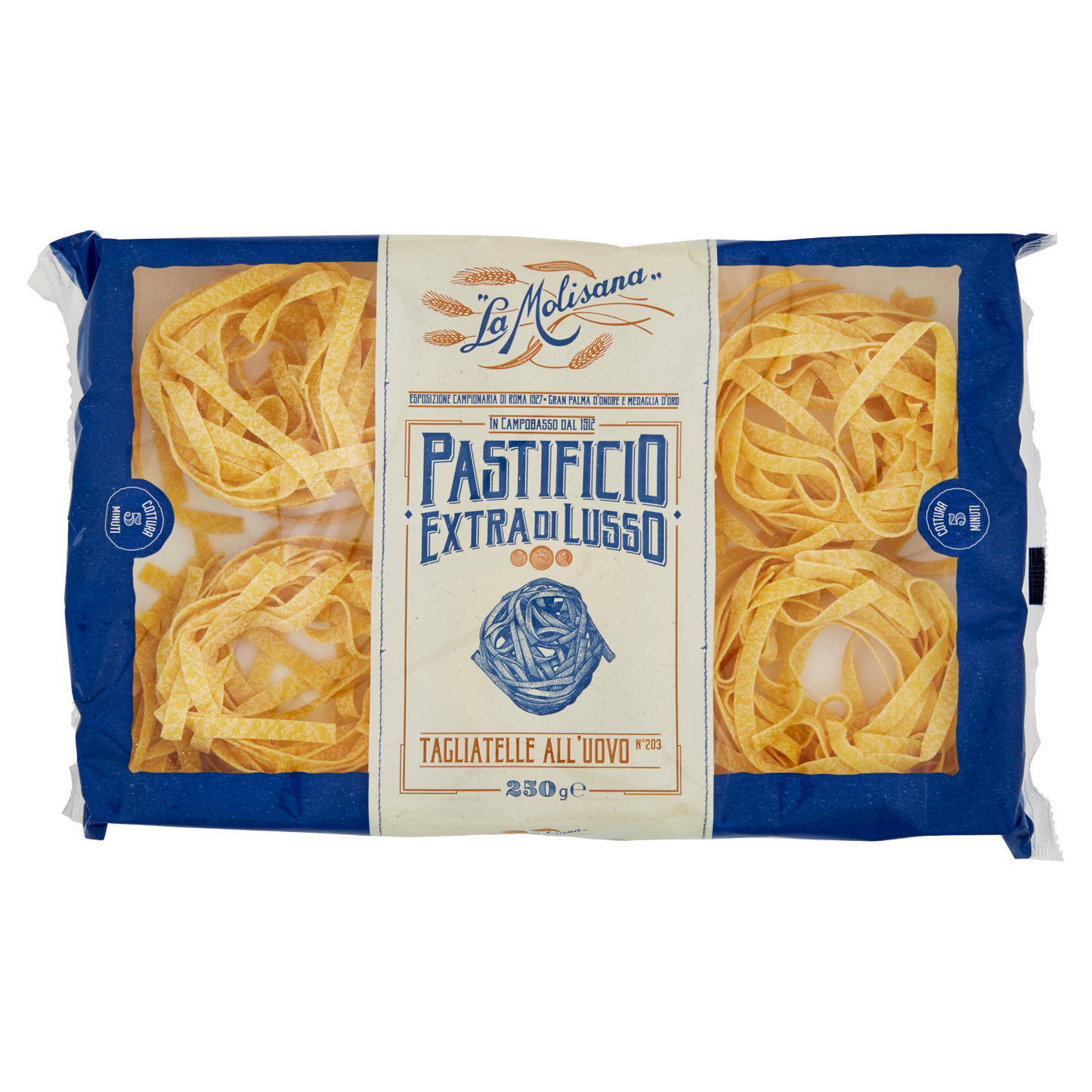 Molisana Tagliatelle Uovo 250g offers a premium pasta experience crafted with high-quality durum wheat semolina and fresh eggs. The 250g pack, sold in convenient boxes of 12, delivers perfectly textured ribbons ideal for rich sauces and traditional Italian dishes. This artisanal pasta maintains excellent bite and absorbs flavors well, making it a refined choice for chefs and enthusiasts seeking authentic Italian cuisine.